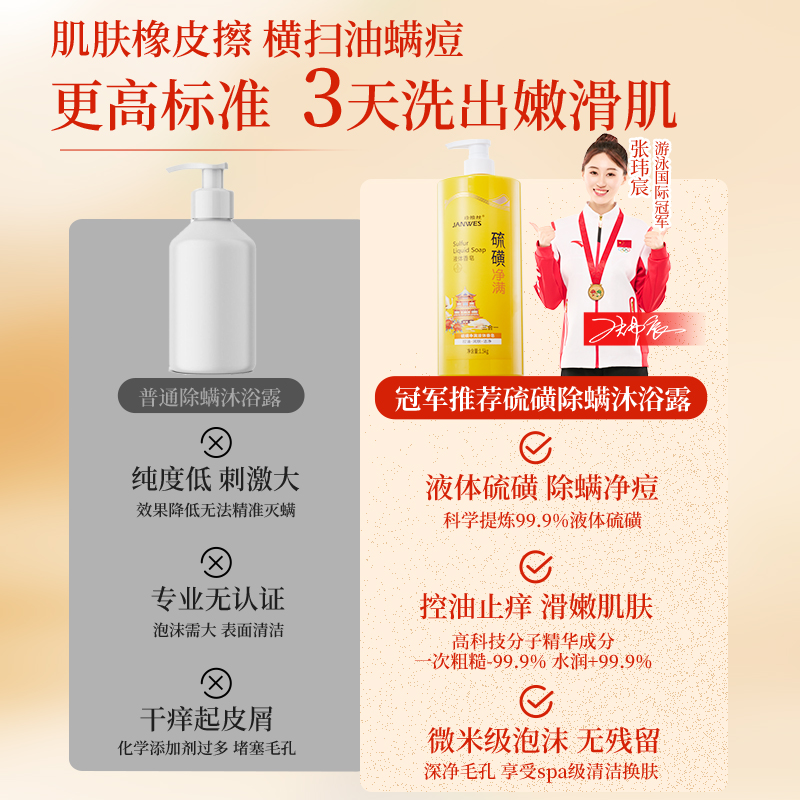 硫磺沐浴露三合一洗澡洗脸洗头男女除螨持久留香液体沐浴皂液香皂