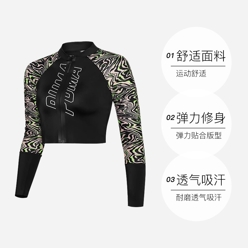 游泳防氯水印花潮流运动休闲透气拉链款 PUMA女士泳衣上装 自营