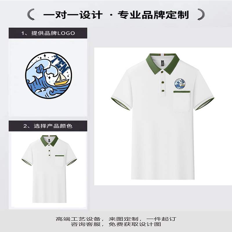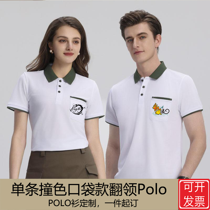 可定制LOGO工作服印字广告衫 青铜系列撞色拼接口袋款 翻领POLO衫