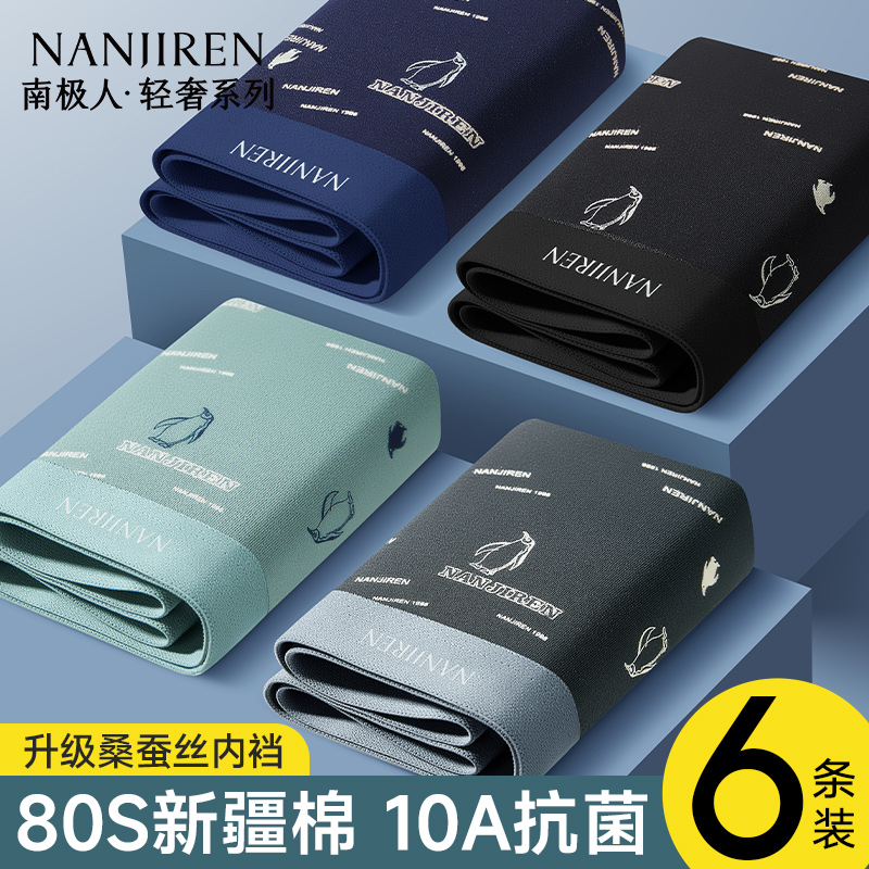 男士 2025新款 冰丝男生四角平角短裤 男款 头纯棉裆夏薄款 南极人内裤