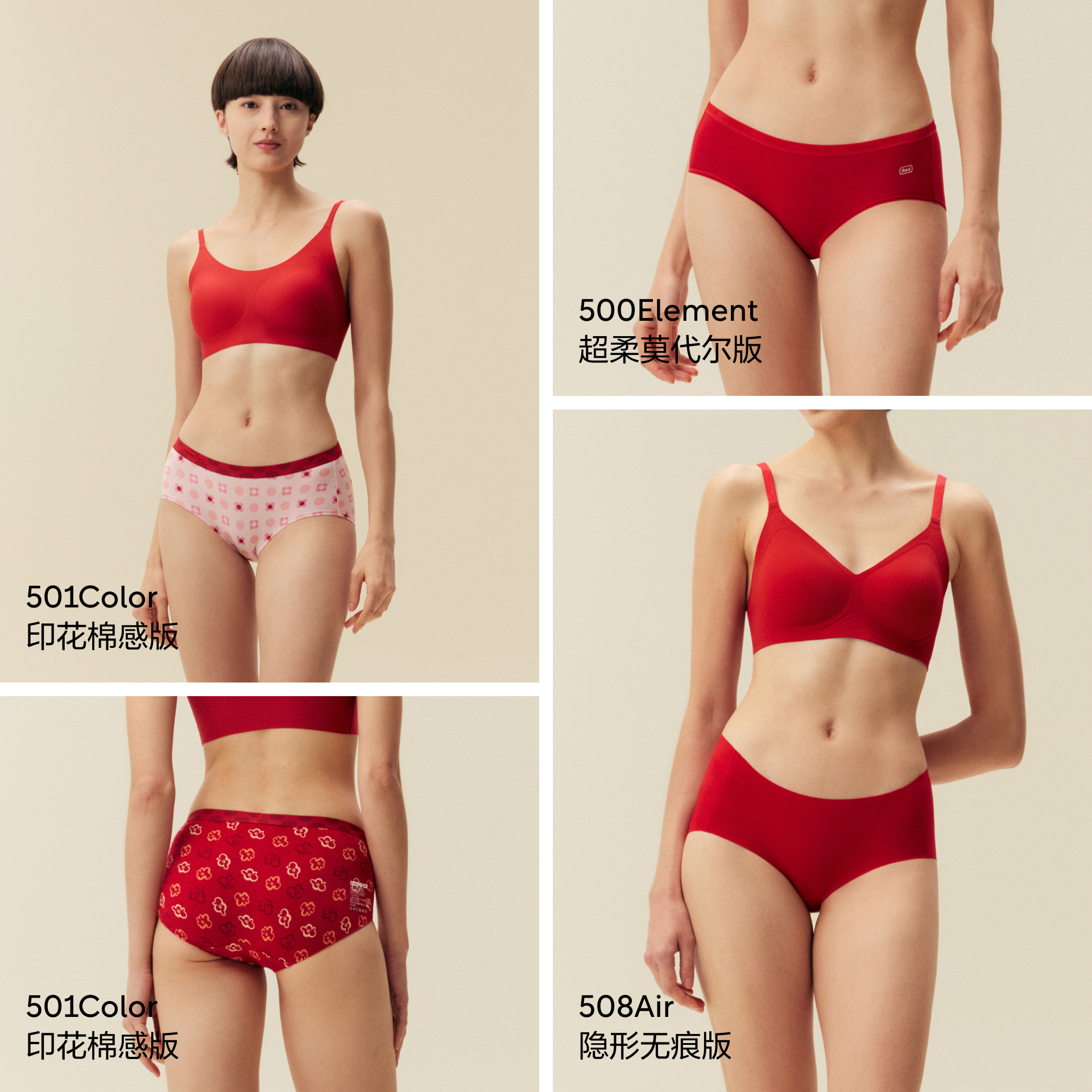 蕉内红色计划5系女士内裤 本命年 纯棉莫代尔情侣结婚喜庆红色内裤
