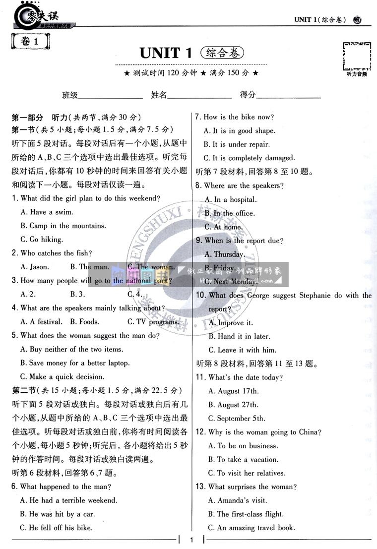 江苏教版 分层测试卷高中英语必修第一册译林版 高一上模块1同步复习检测模拟考试测评卷期末强化冲刺新高考必刷题 零失误单元 2025版