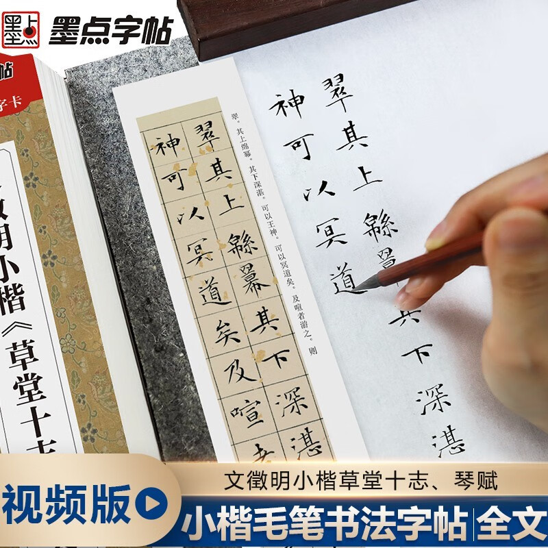 琴赋 近距离临摹字卡 临摹楷书描红学生成人入门初学者碑帖 墨点字帖 小楷毛笔书法字帖 墨迹版 文徵明小楷草堂十志 看视频 扫码