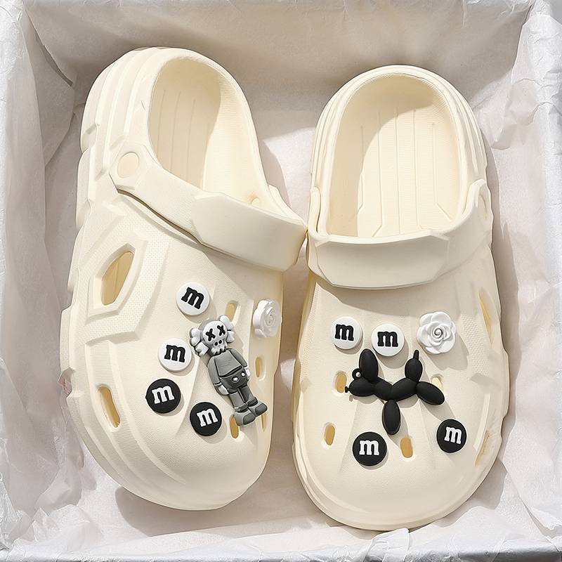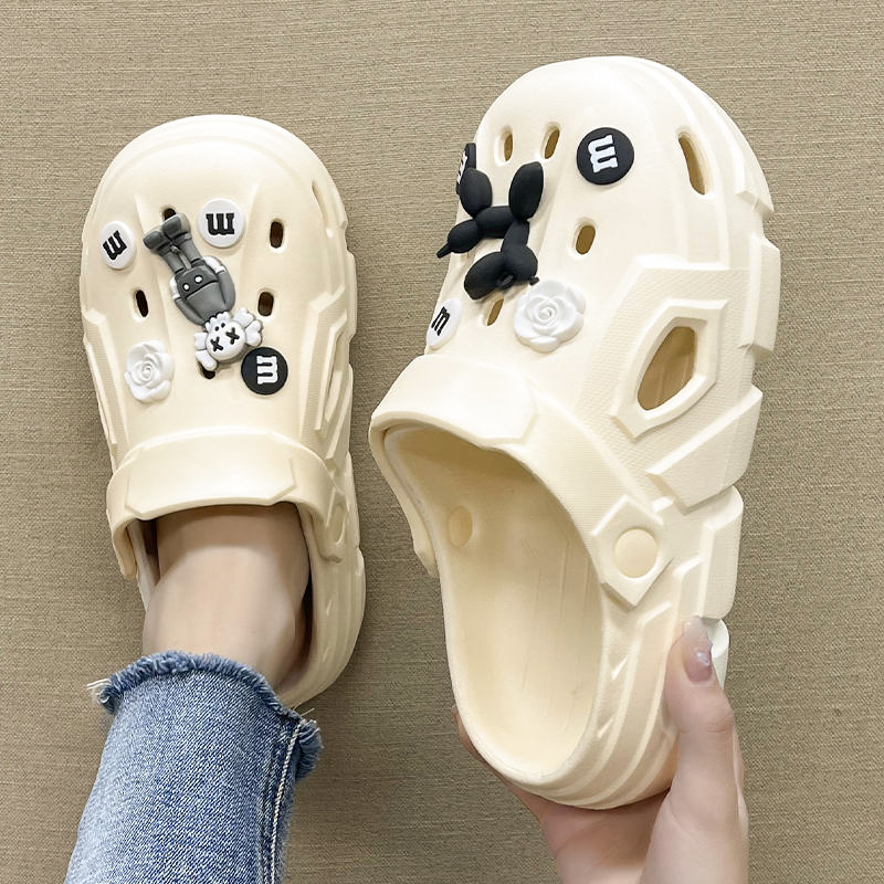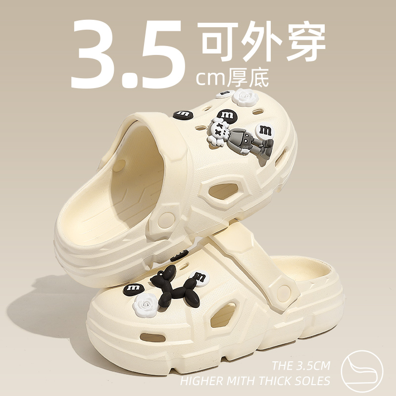 女款 室内家居防滑厚底外穿沙滩包头半拖凉鞋 女士夏季 踩屎感洞洞鞋