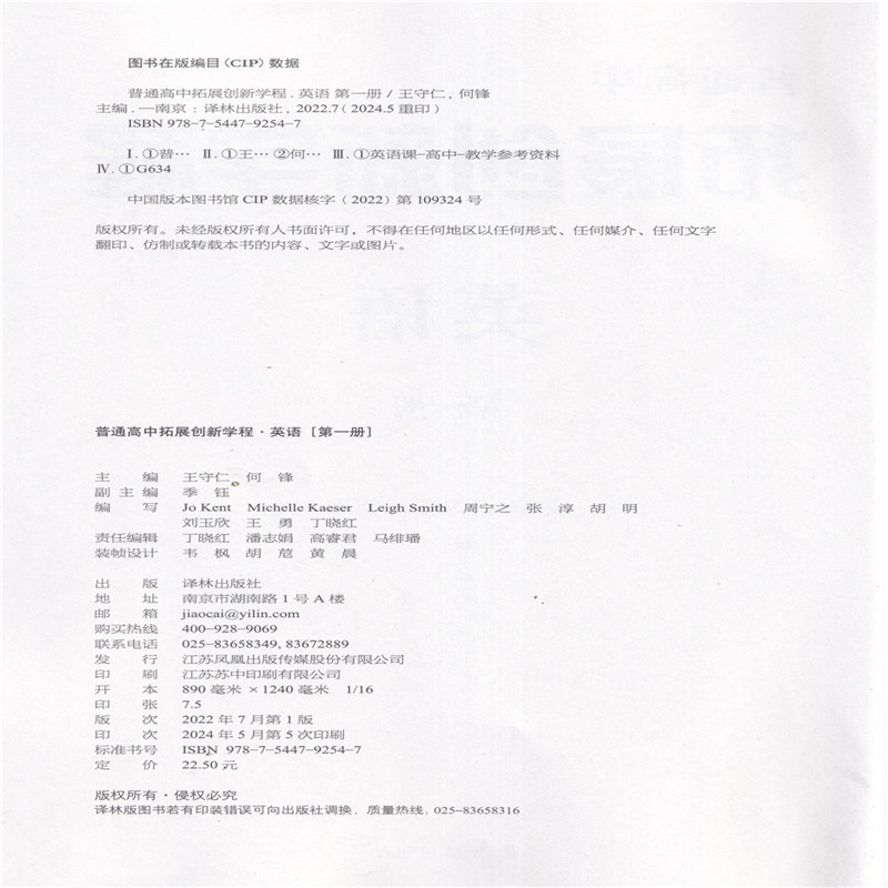 封面有折痕内容完好2025年译林版 社高三英语选修教材英语第一册2024年5月第5次印刷 普通高中拓展创新学程英语第一册译林出版