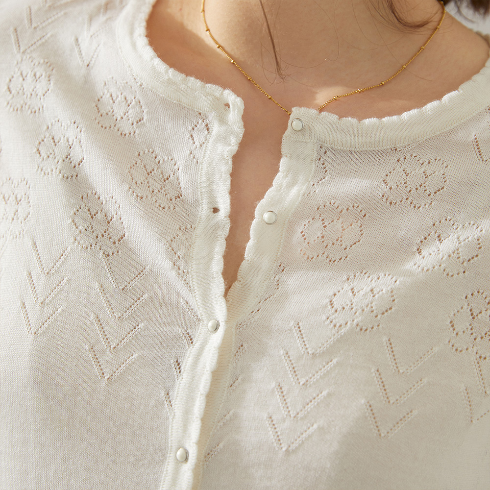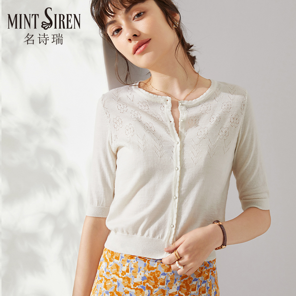 羊毛衫 短袖 白色开衫 小众原创短款 2025春秋新品 上衣圆领针织衫 薄款