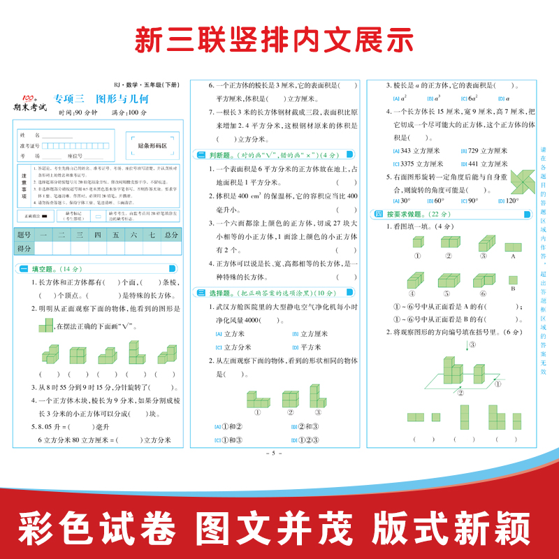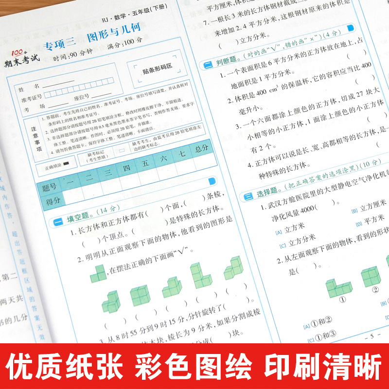 复习卷 突破卷 专项卷 小学生期末冲刺100分数学五年级试卷下册 检测卷 押题必刷卷 RJ人教版 期末卷 2022年春季 培优卷