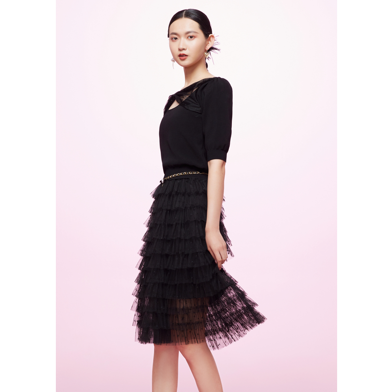 垂坠丝滑A字中长裙套装 深V翻领针织衫 连衣裙女 新款 ONLY2025秋季