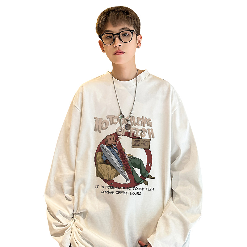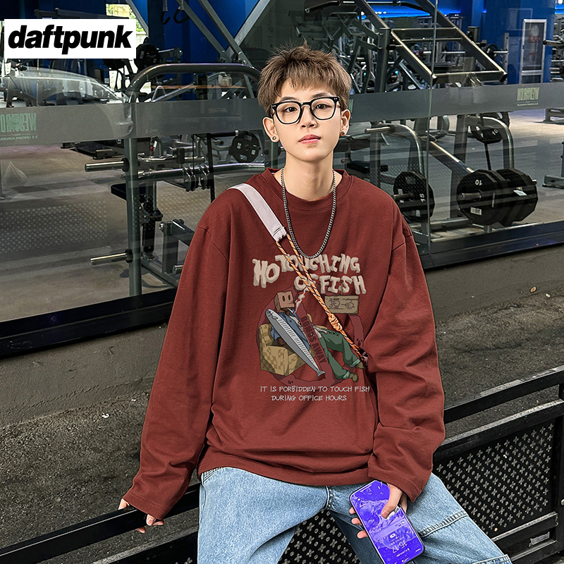 复古潮流潮牌宽松重磅纯棉打底体恤衫 酒红色长袖 美式 秋季 t恤男款