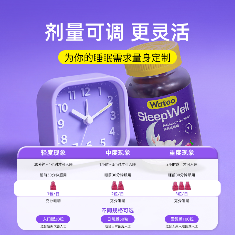 Watoo褪黑素软糖安瓶助睡眠退黑素安眠失眠改善闪睡片官方旗舰店