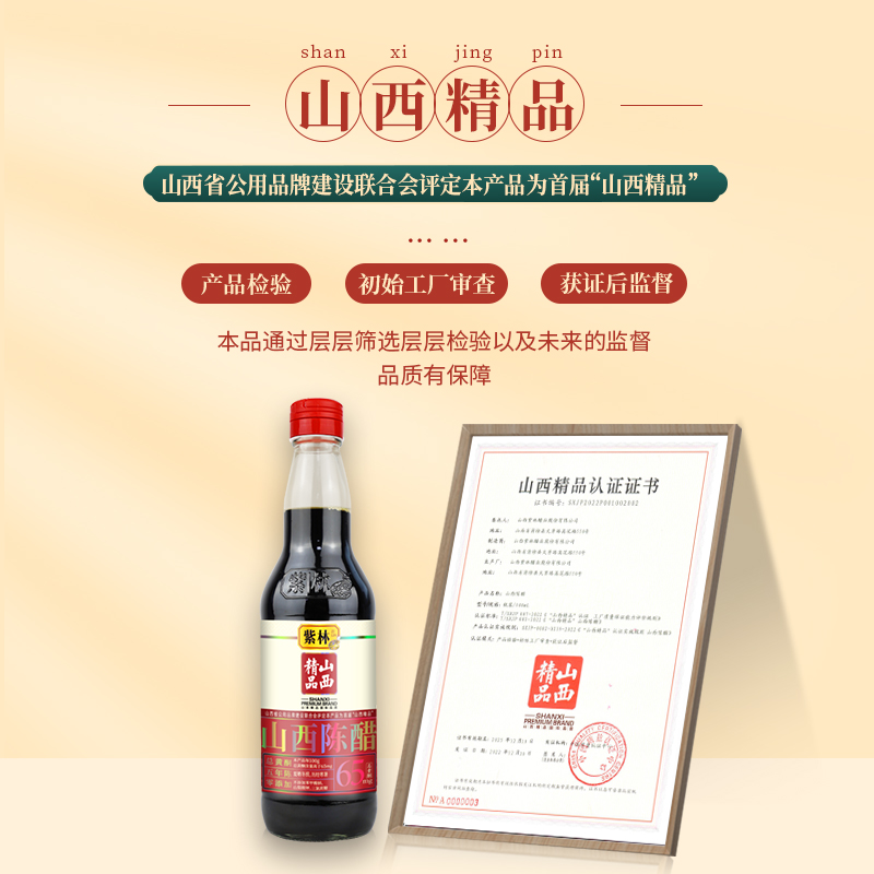 紫林5年陈山西陈醋500ml玻璃瓶4.5度无添加酿造食醋 山西精品