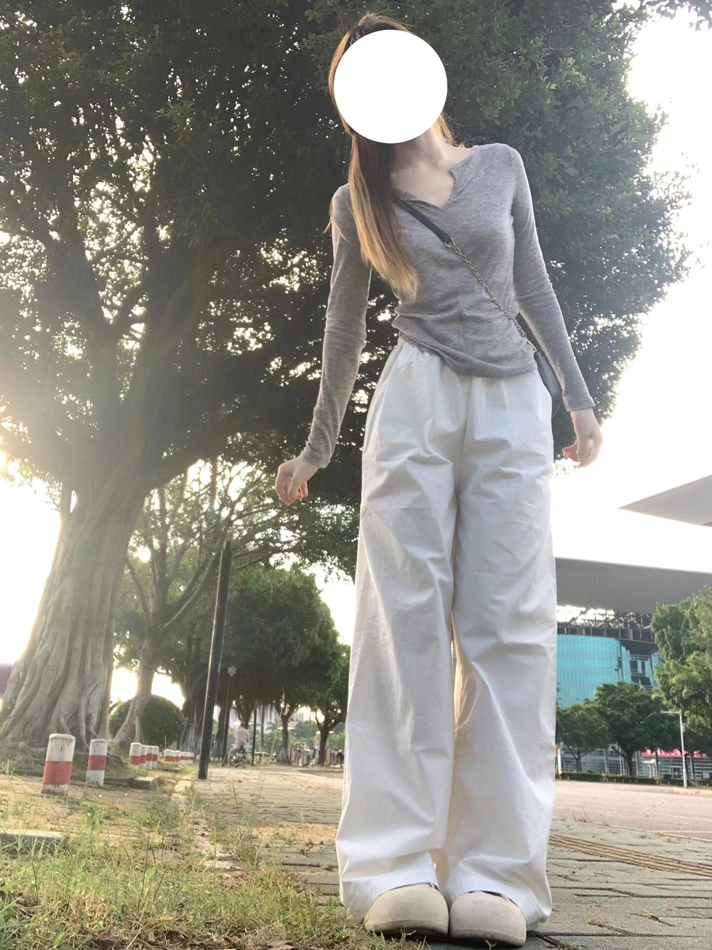 辣妹修身 打底衫 显瘦上衣 T恤女春秋内搭短款 设计感小众正肩V领长袖