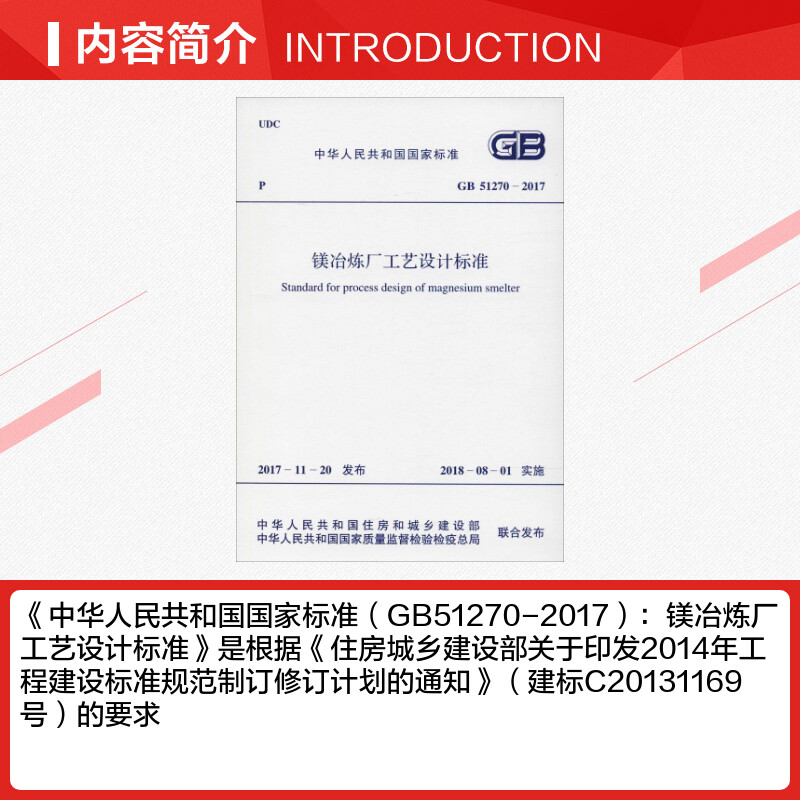 联合发布 中华人民共和国国家质量监督检验检疫总局 镁冶炼厂工艺设计标准 中华人民共和国住房和城乡建设部