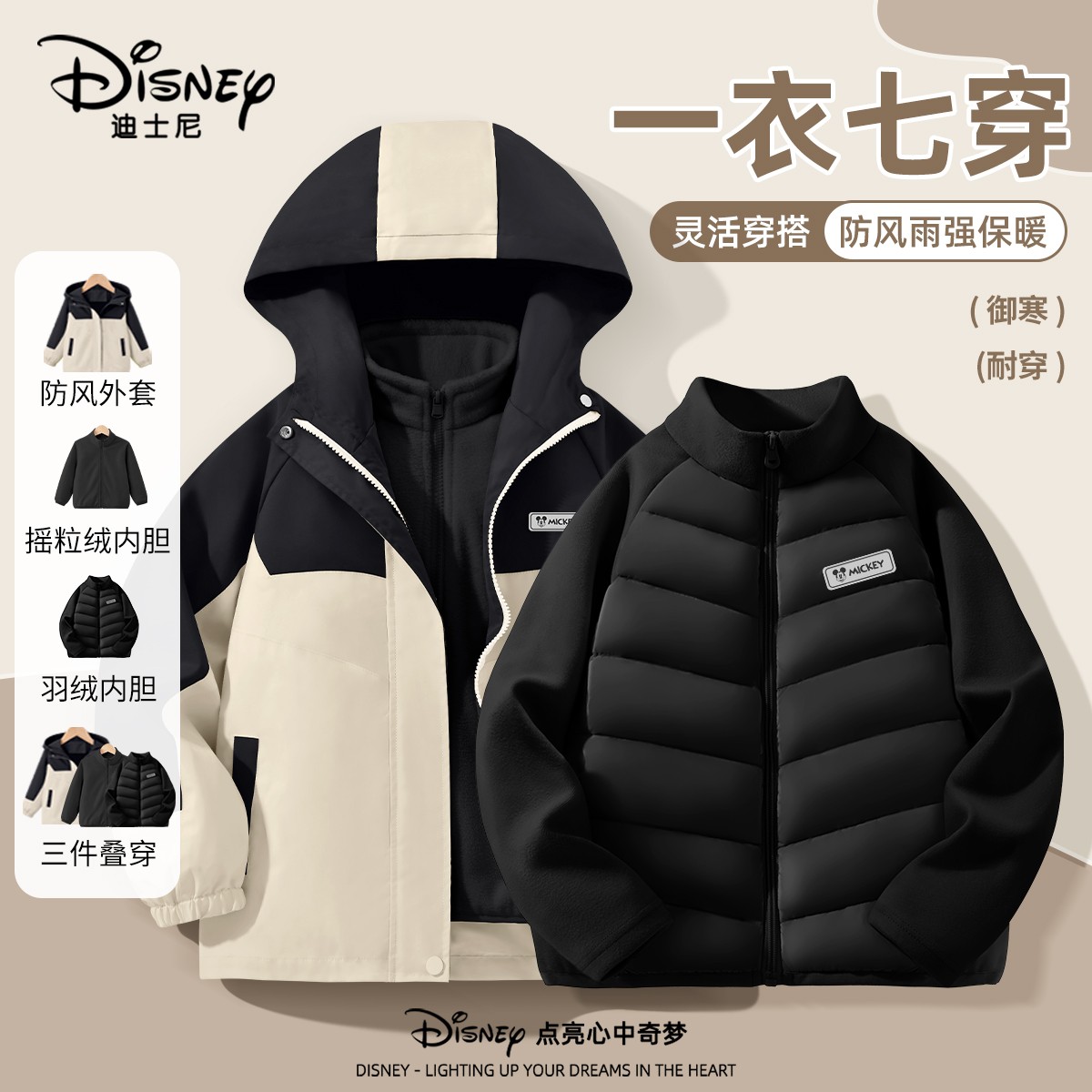 加绒保暖厚外套 童装 迪士尼儿童三合一冲锋衣2025新款 中大童秋冬款