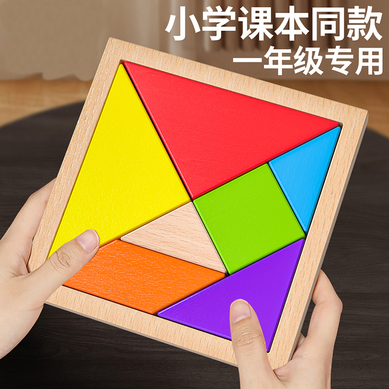 木质七巧板小学生专用一年级教具儿童智力磁力拼图玩具方块华容道