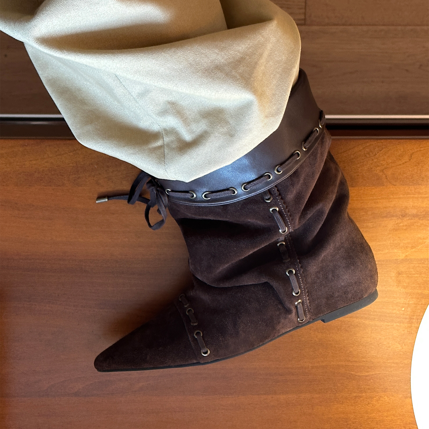 堆叠感踝靴游牧风尖头短靴堆堆靴子女 unfolio25新款 双11预售