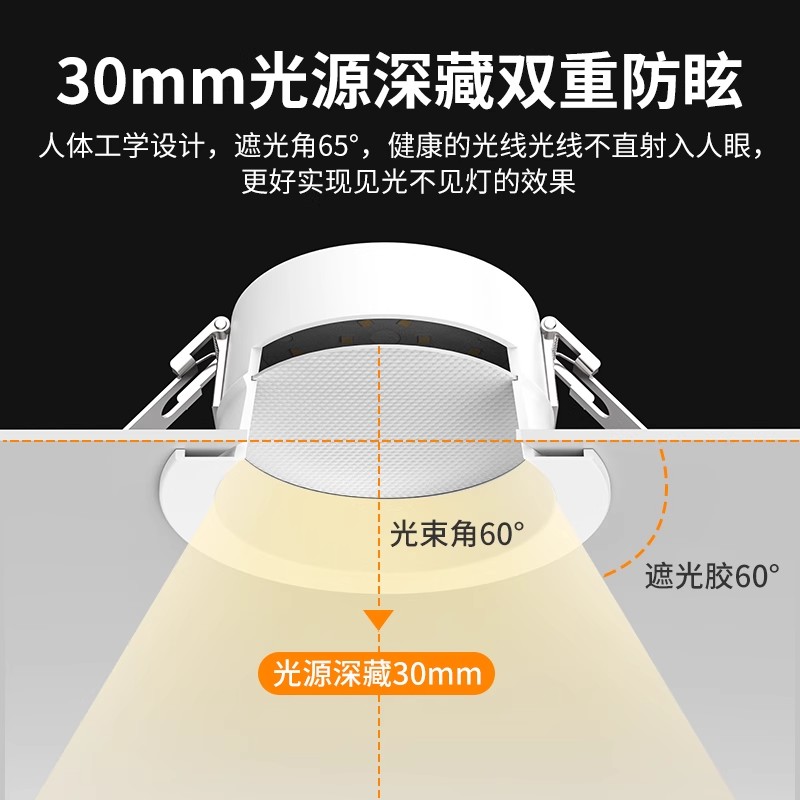 防眩筒灯led嵌入式 店铺商用2.5寸3.5寸4寸6寸孔灯开孔912cm客厅