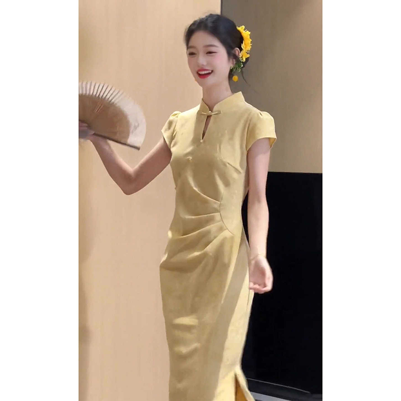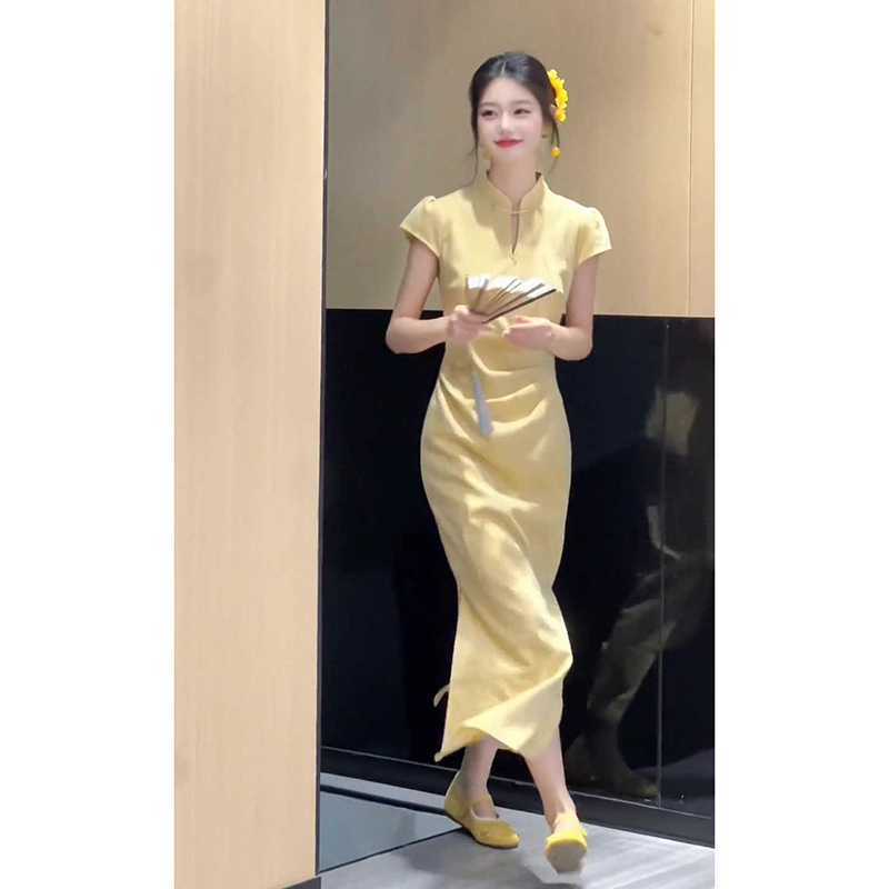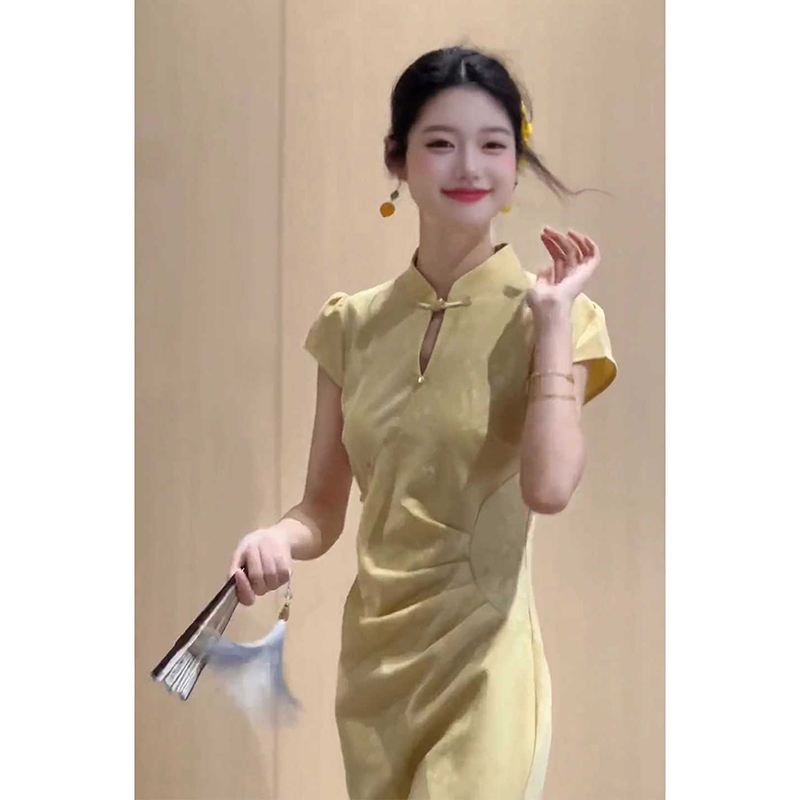 女装 收腰新中式 旗袍连衣裙夏设计感开叉复古气质时尚 中国风改良版