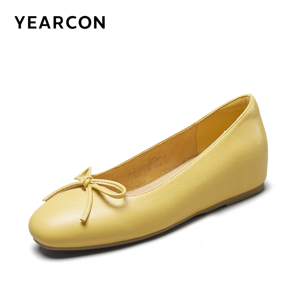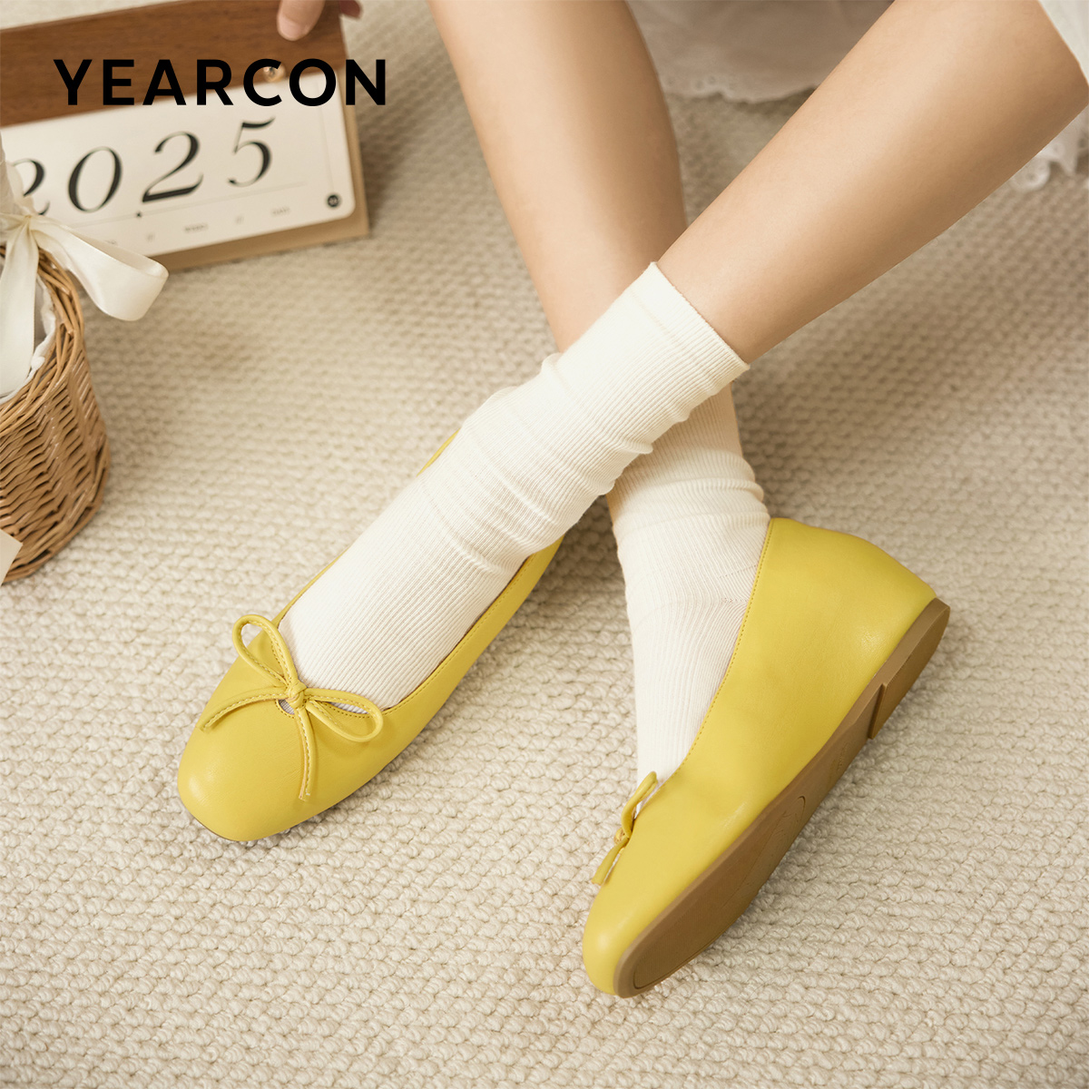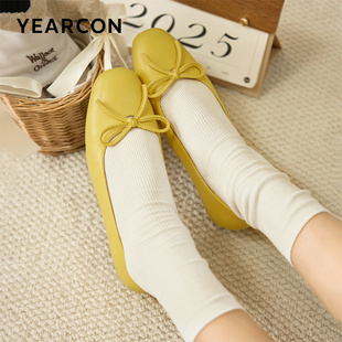 2025秋季 法式 新款 蝴蝶结浅口单鞋 配裙子 女士内增高皮鞋 意尔康女鞋