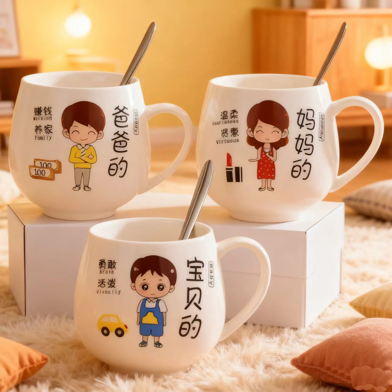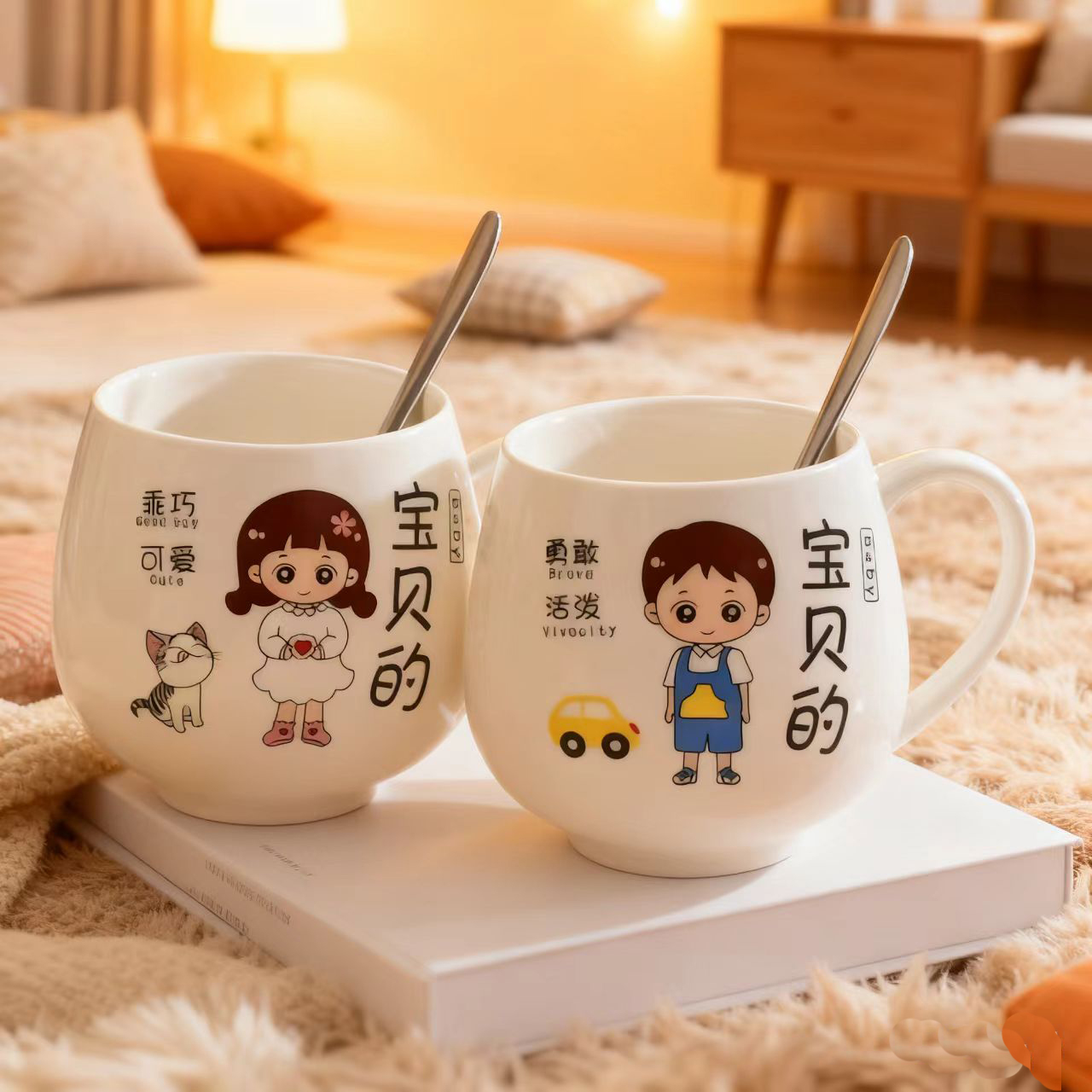 马克杯陶瓷带盖勺喝水杯子创意潮流男女情侣家用办公室早餐咖啡杯