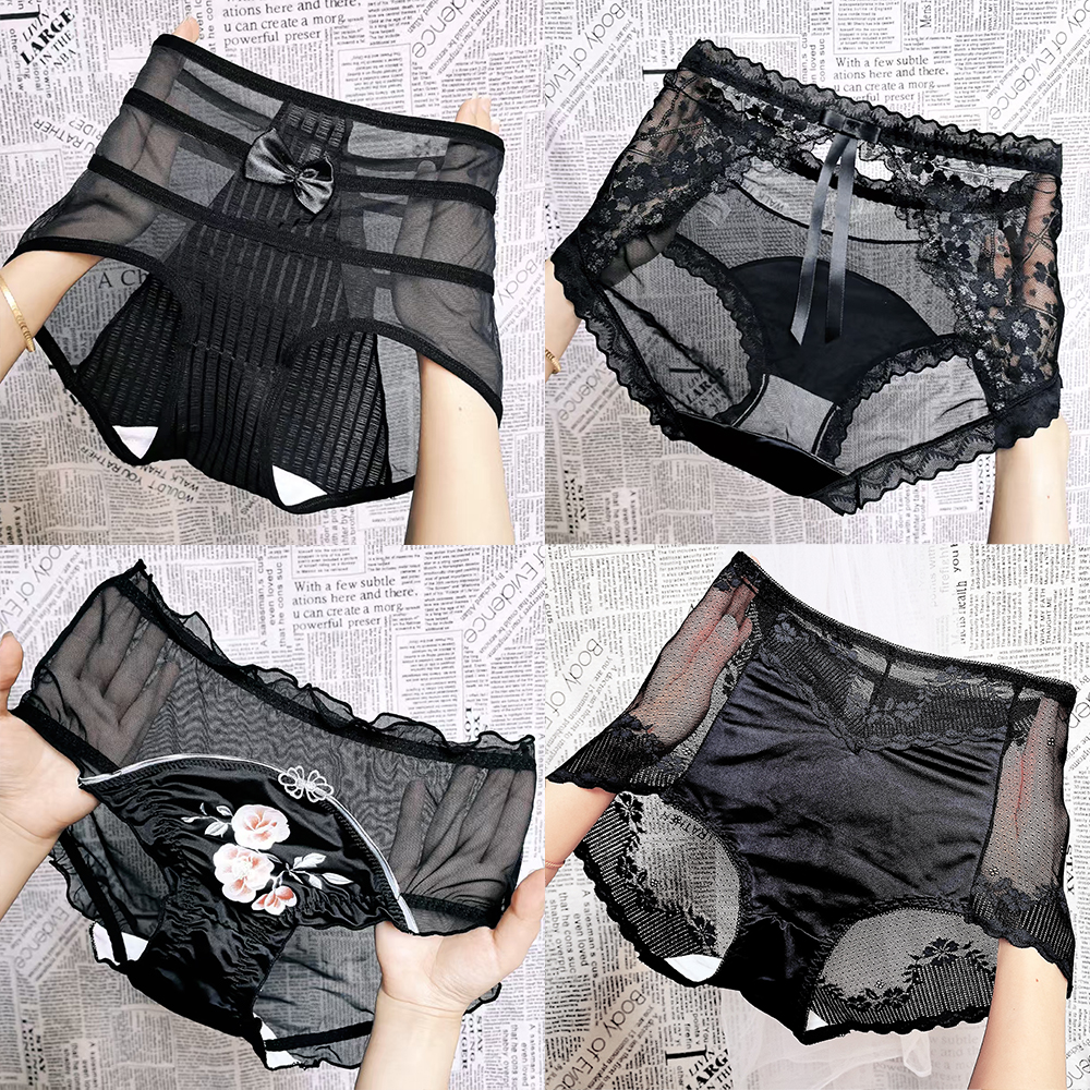 女透气蕾丝性感中腰透明网纱无痕提臀收腹纯棉裆大码 内裤 薄款 夏季