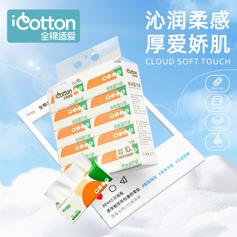 中亿孕婴童全棉适爱亲肤面巾抽纸10连包5层加厚宝宝母婴纸 2提