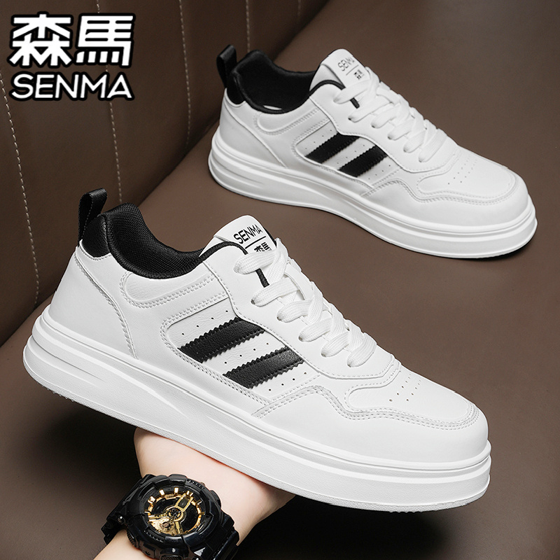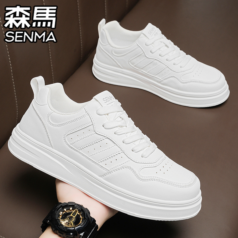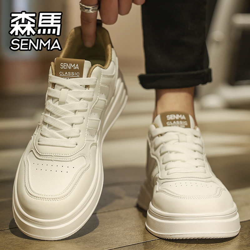 真皮软底增高百搭小白潮鞋 森马男鞋 男士 透气运动休闲低帮板鞋 秋季