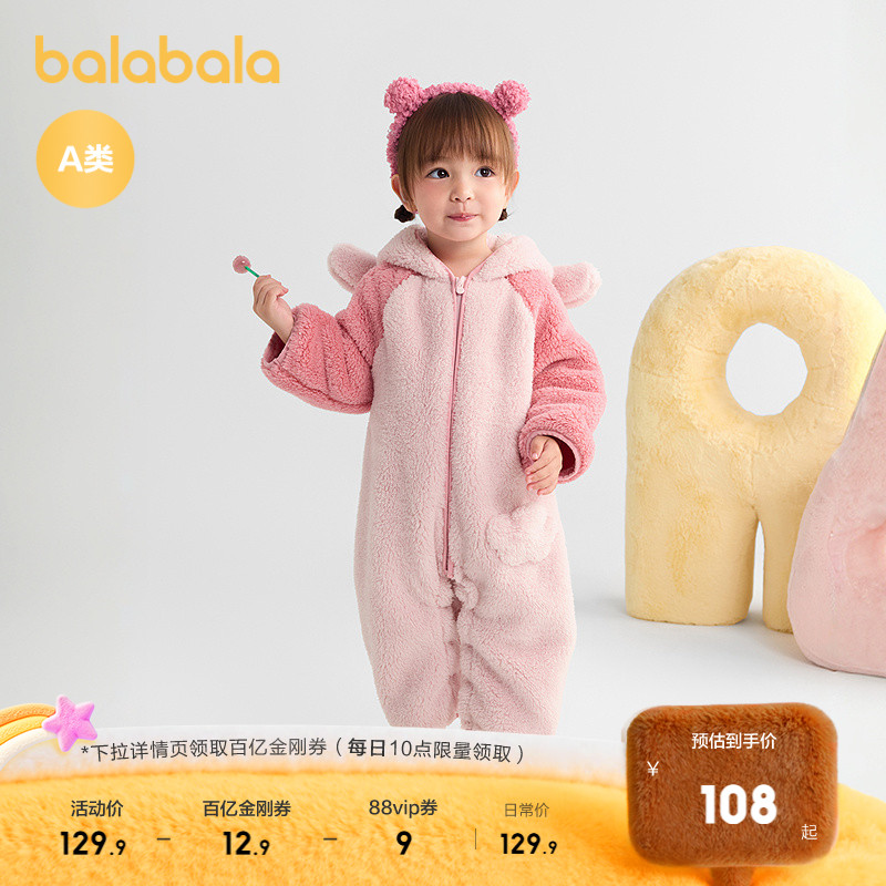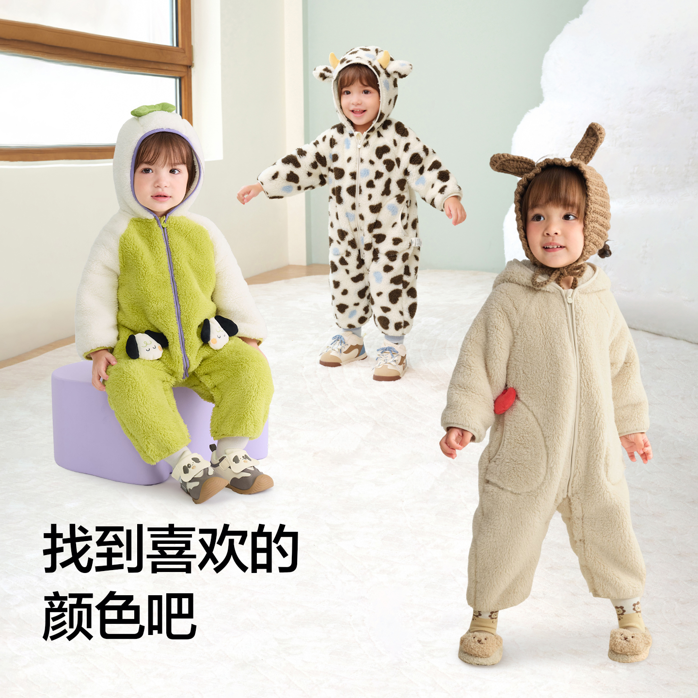巴拉巴拉童装 珊瑚绒 新生婴儿连体衣秋冬宝宝衣服哈衣爬服2025新款