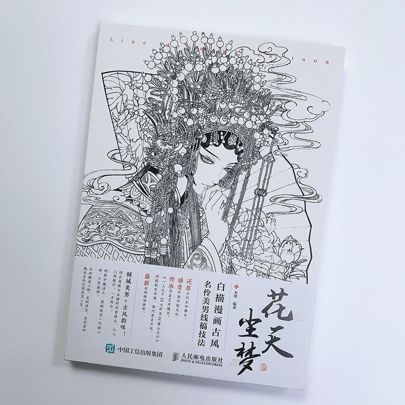 花天尘梦白描漫画古风名伶美男线稿技法书木犁漫画人物画技法艺术书籍融合中国传统白描技法和古风漫画飘逸华美特征 新型绘画理念