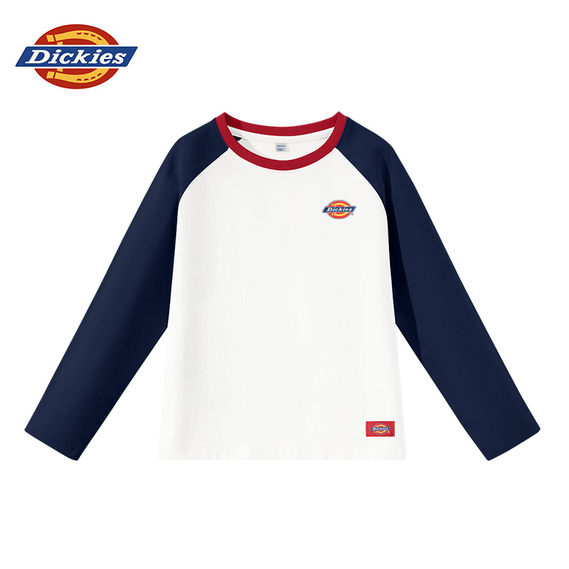 t恤儿童纯棉洋气拼接插肩打底衫 男女童长袖 2025年新款 Dickies童装