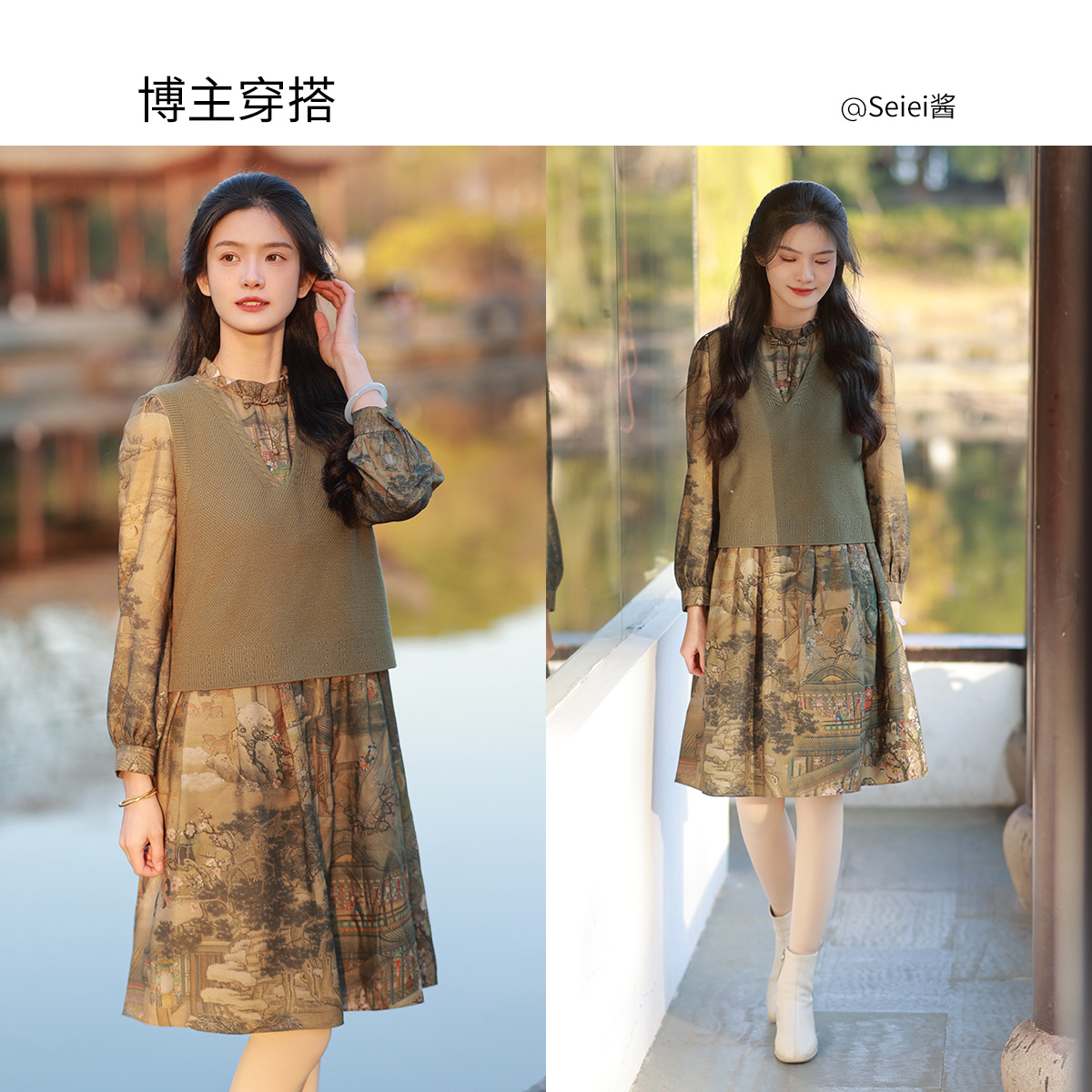 阔色白色针织连衣裙毛衣裙女2025秋冬季 黑色长裙子冬裙穿搭 新款