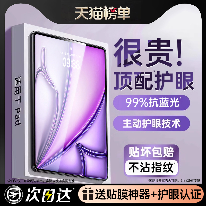 6苹果2025新款 开晖适用iPad11钢化膜iPadAir7 pro10平板9保护2024mini5第8代11寸类纸4贴3 顶配AR无色护眼