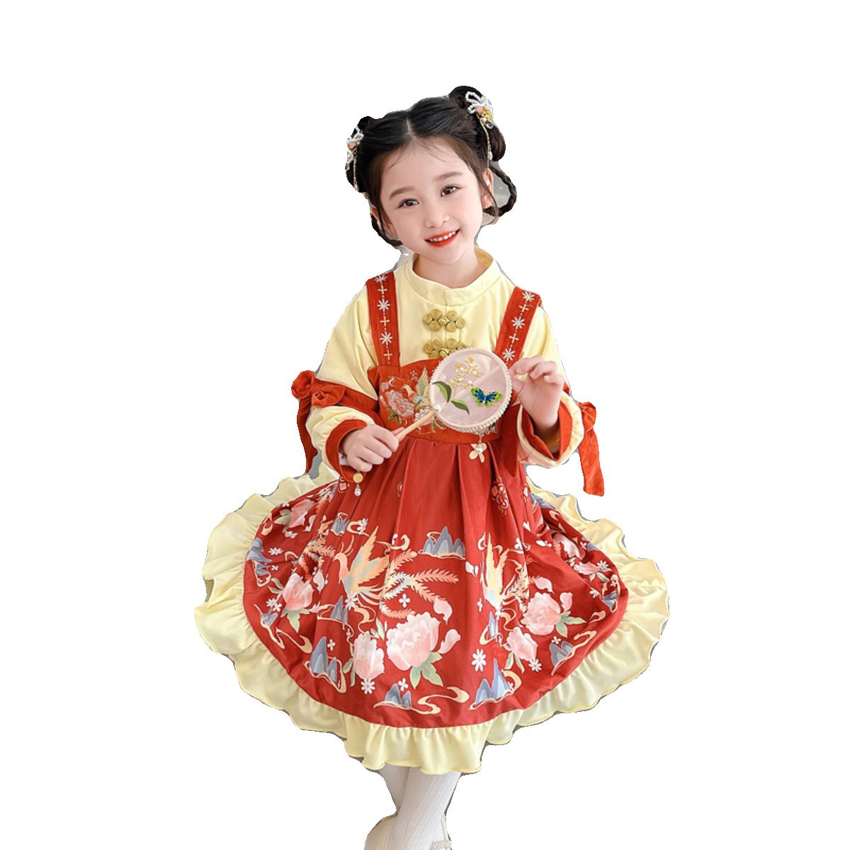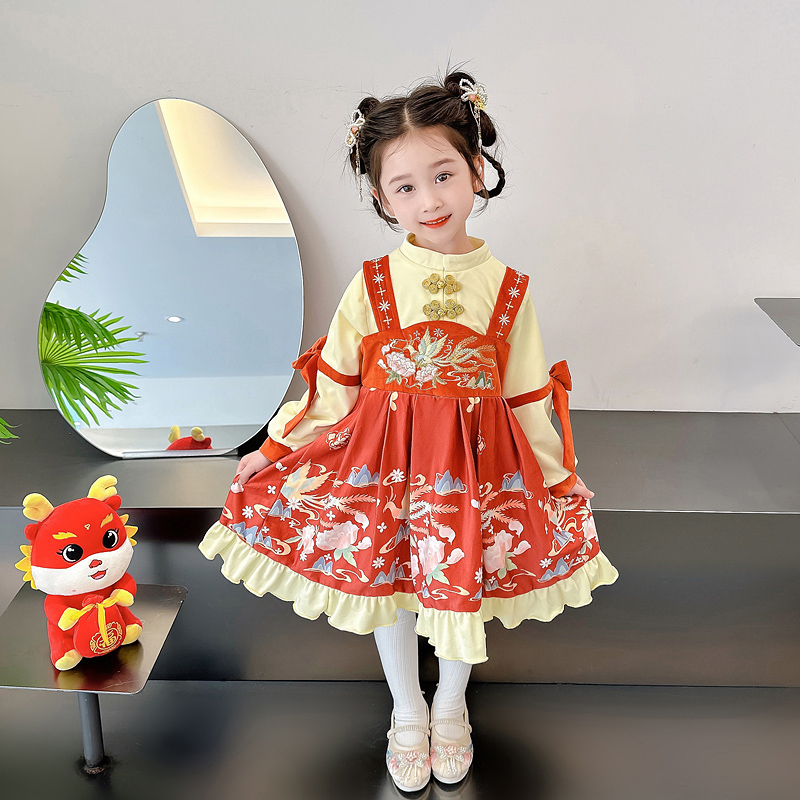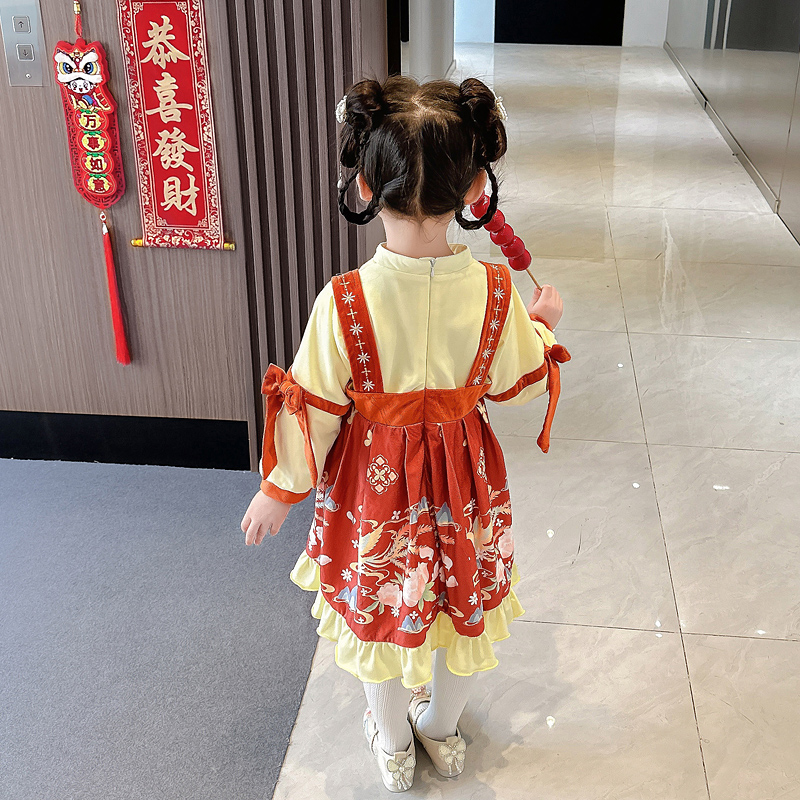 巴拉妮琪balaniqi女童冬中国风刺绣唐装 连衣裙凤凰戏加厚公主汉服