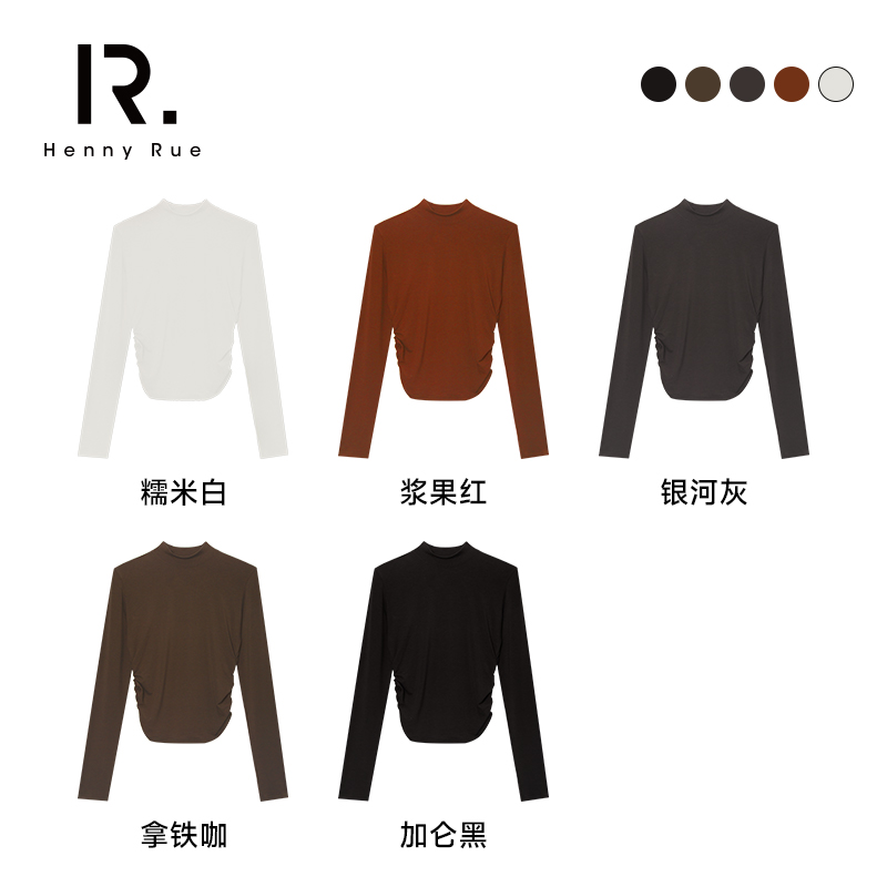 打底衫 HENNY RUE亨尼露含羊绒蛋白半高领抽褶养肤衣女内搭加长袖
