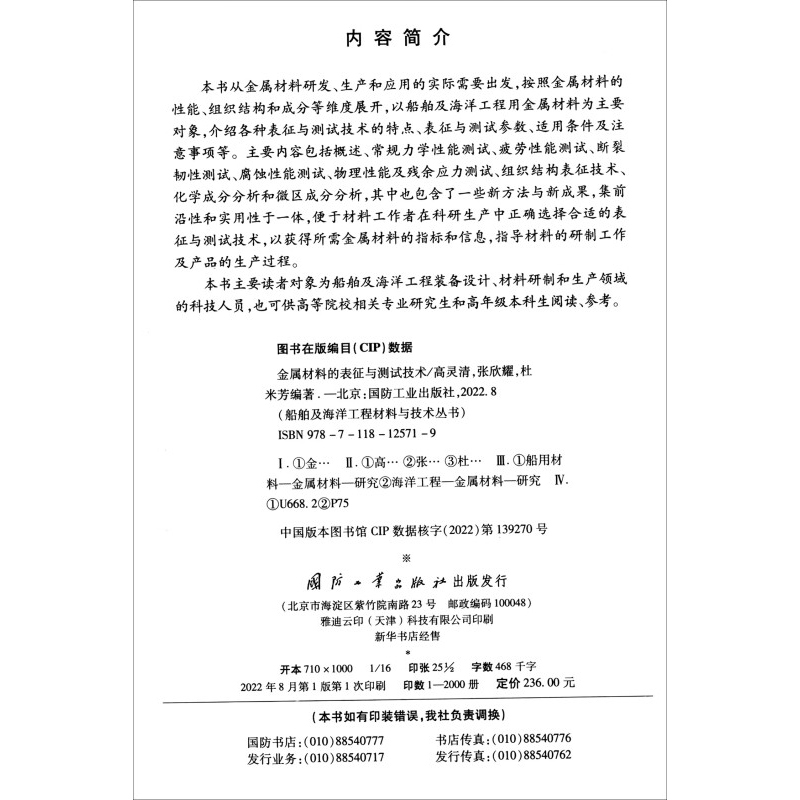 常规力学性能测试 船舶及海洋工程材料与技术丛书 疲劳性能测试 断裂韧性测试 物理性能 金属材料 腐蚀性能测试 表征与测试技术