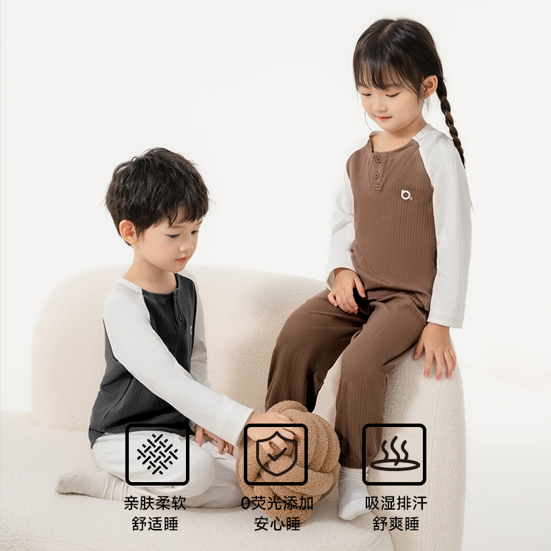 睡衣套装 儿童家居服纯棉男童女童中大童宝宝长袖 秋 桉树暖皮衣