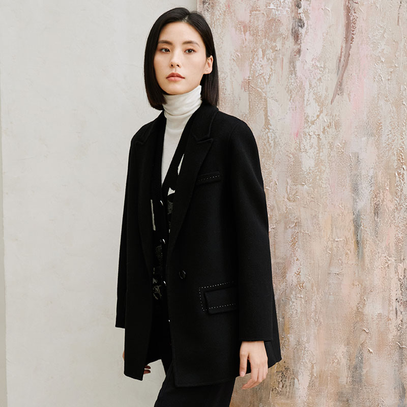 气质呢大衣 羊毛大衣女25新时尚 太平鸟甄毛系列黑金大衣3.0西装 式
