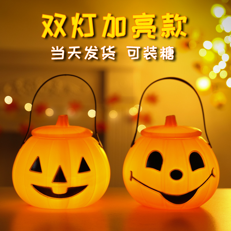 万圣节装 扮儿童小礼品讨糖桶南瓜灯拍照道具发光饰品 饰品糖果袋装