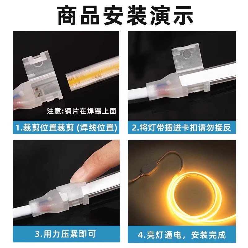 220V灯带接头免焊插头变压器快接带线高压灯带卡扣转换头LED配件