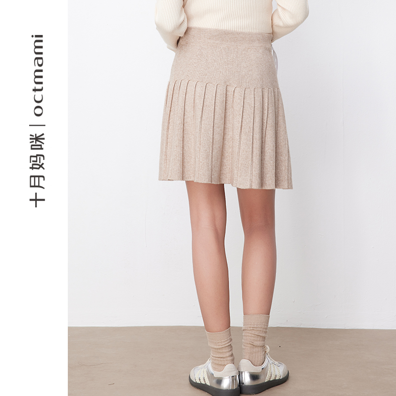 十月妈咪孕妇百褶针织半身裙2025新款 秋冬外穿怀孕宽松托腹裙子