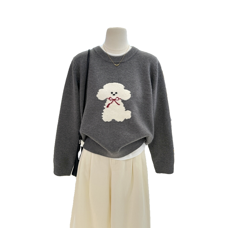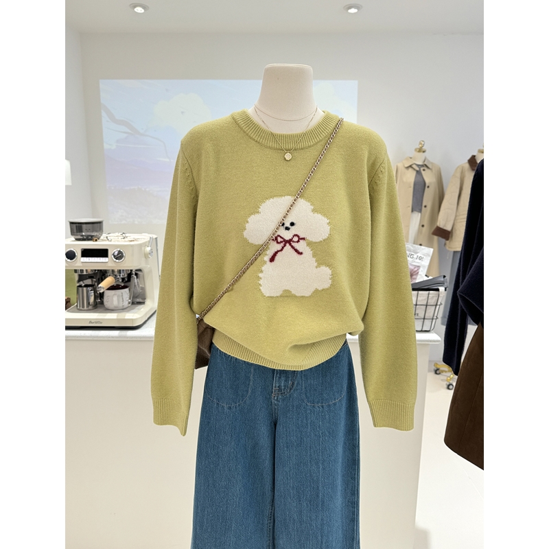 多色 羊毛混纺女士品质通勤毛衣慵懒开衫 太平鸟 miu绞花圆领针织衫
