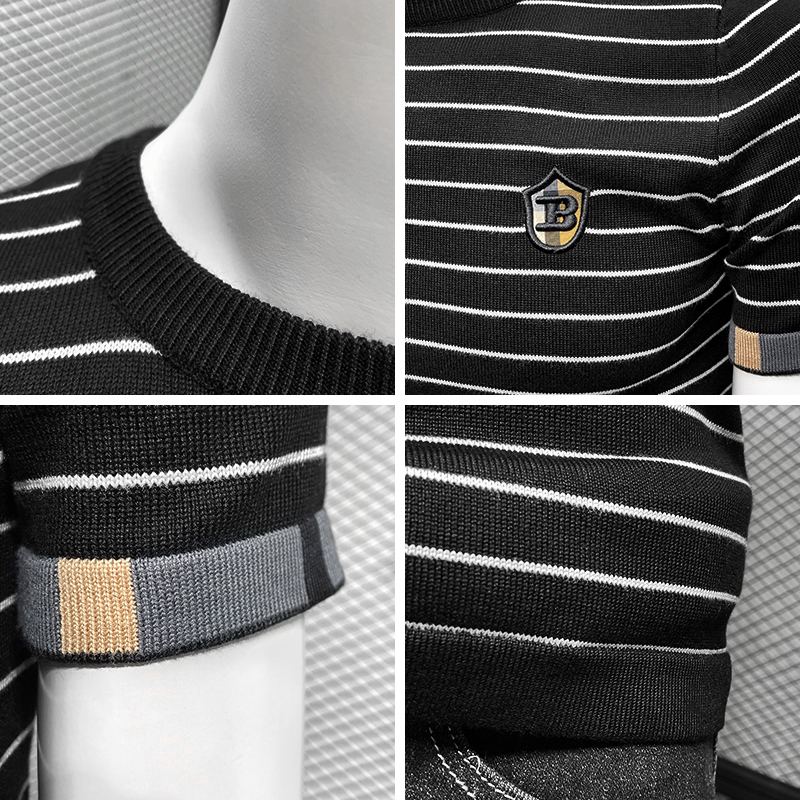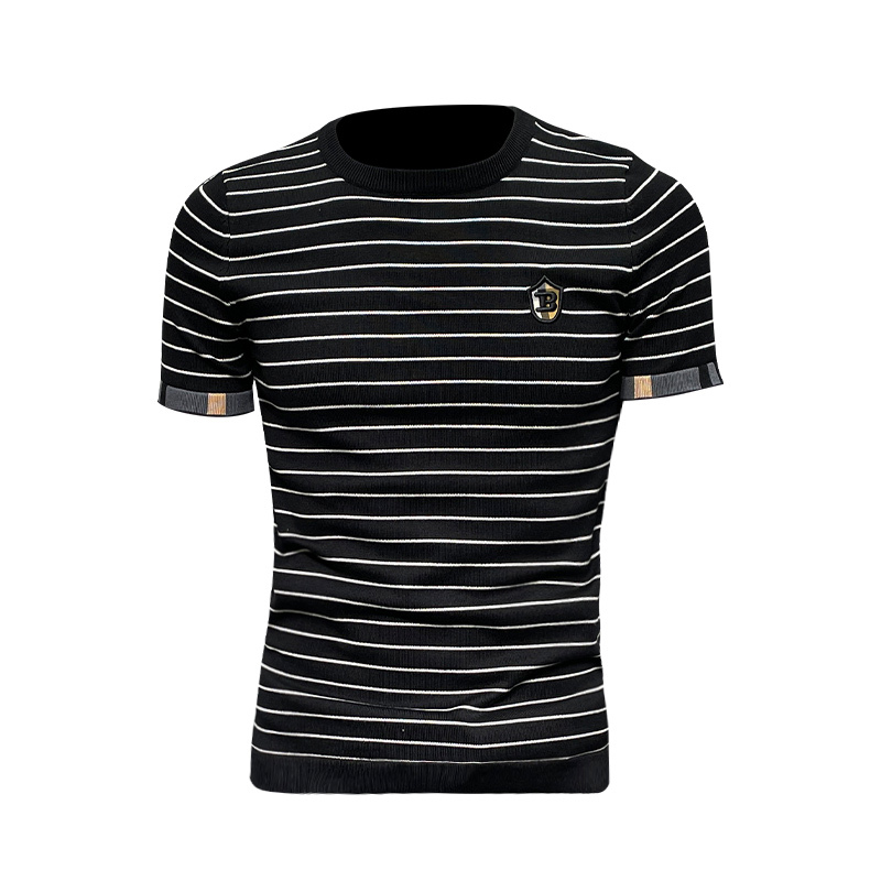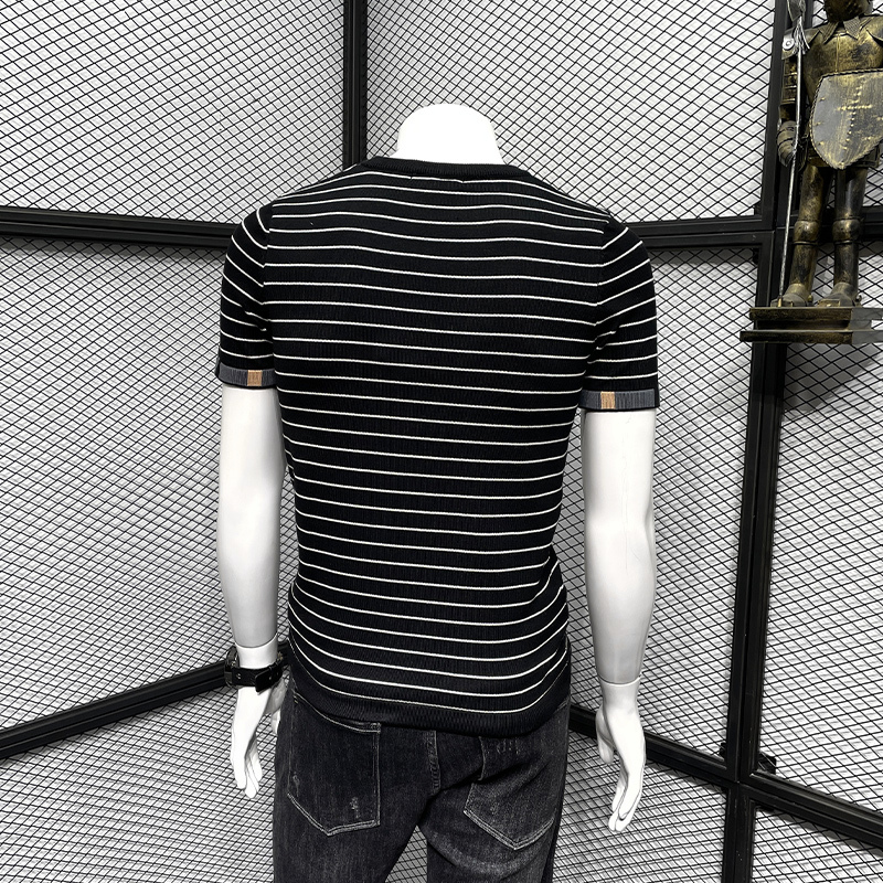 春季 毛衣打底衫 韩版 潮流修身 条纹针织 2022年新款 帅气男士 短袖