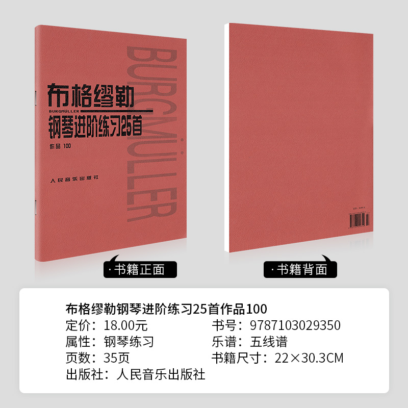 社 钢琴基础练习曲教程书籍布格谬勒钢琴曲集钢琴乐谱书籍教材教程教科书人民音乐出版 正版 布格缪勒25首钢琴简易进阶练习曲作品100