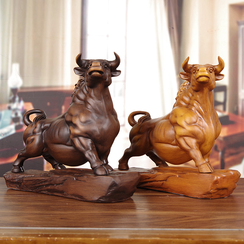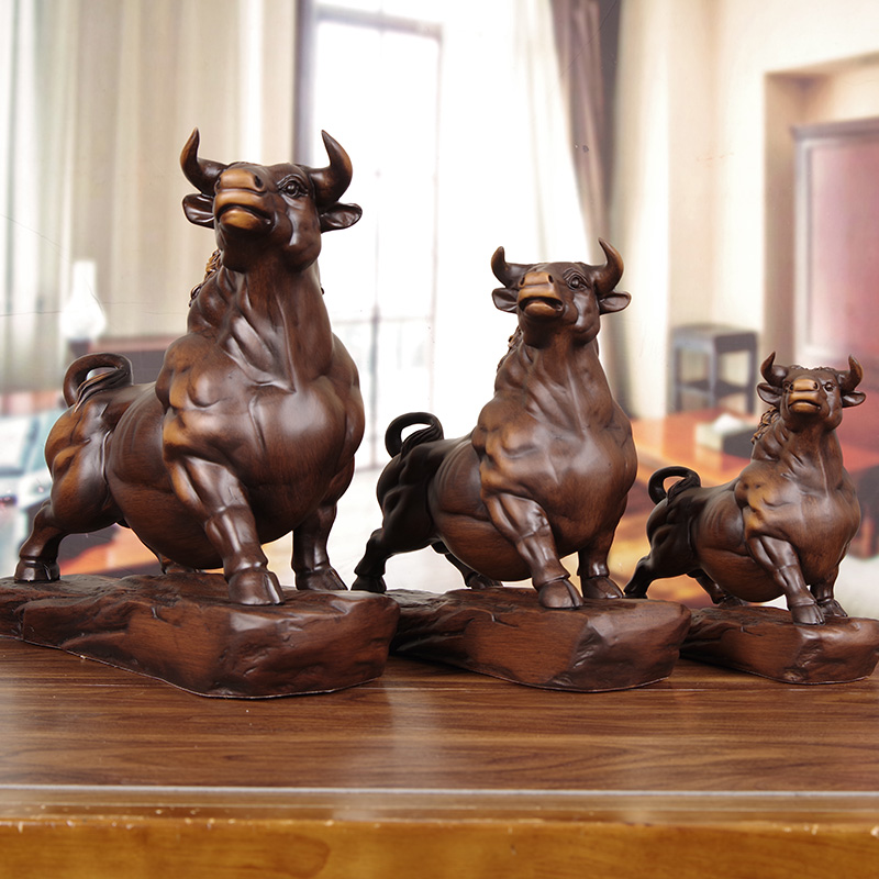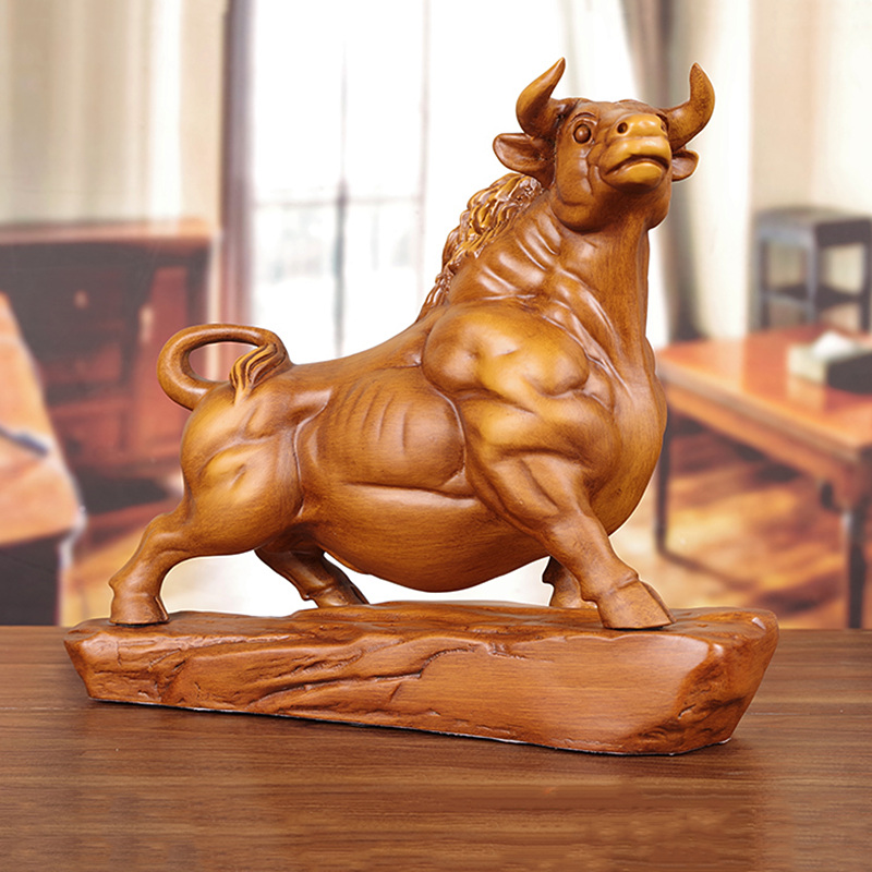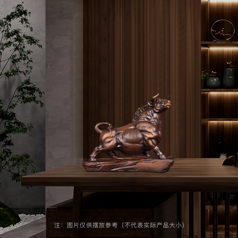 实木雕刻牛摆件招财牛纯木质公司办公室装 饰店铺开业商务礼品高档