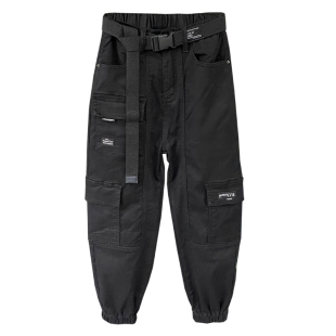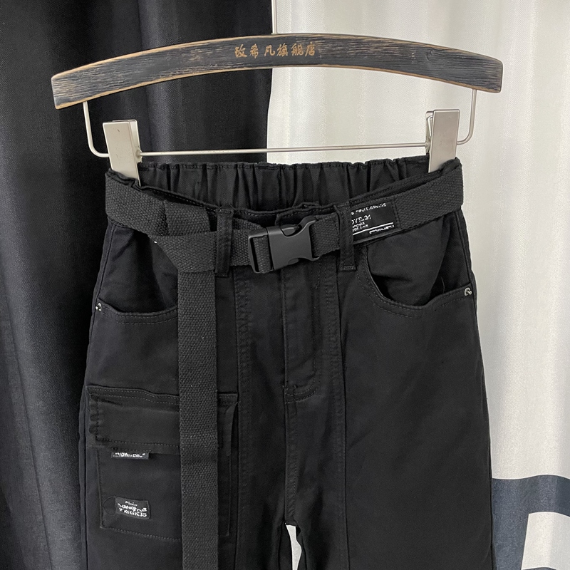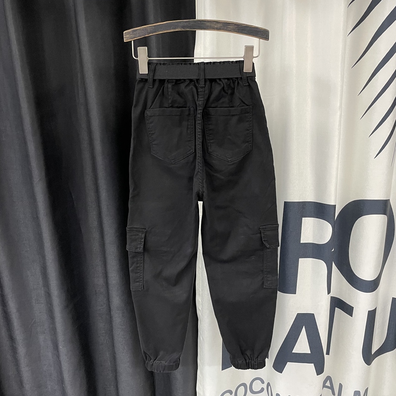 女宽松休闲束脚九分哈伦裤 欧货2025秋季 裤 黑色多口袋牛仔工装 新款