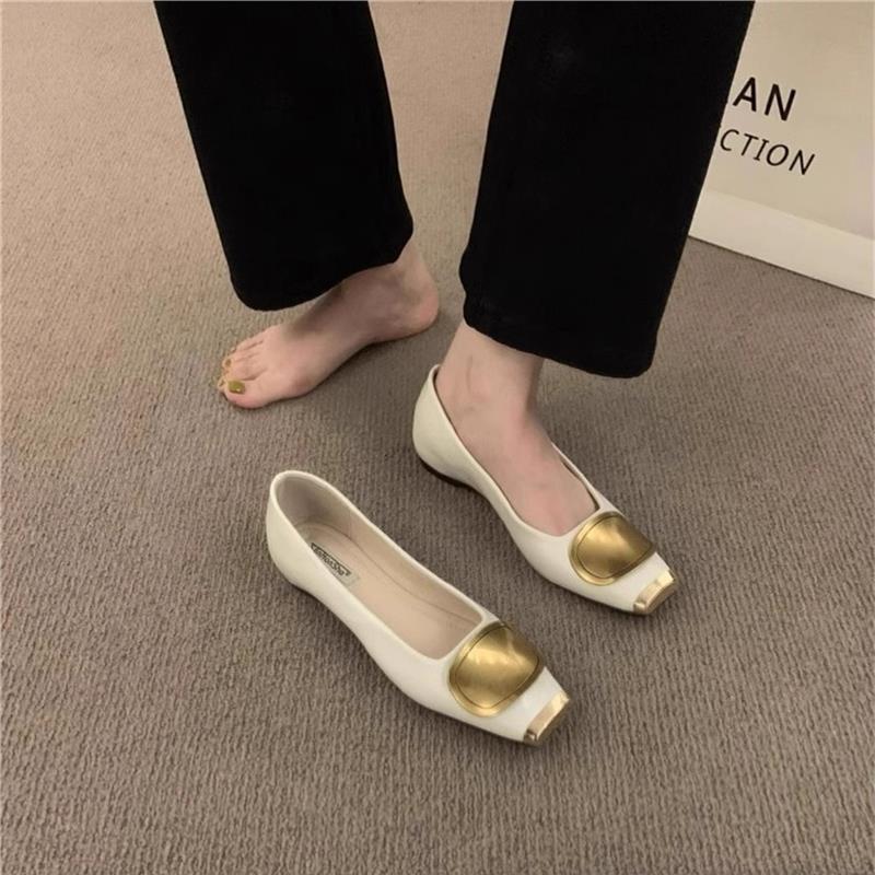 绝美气质通勤平底鞋 小个子内增高裸色方扣浅口单鞋 女2025春夏新款