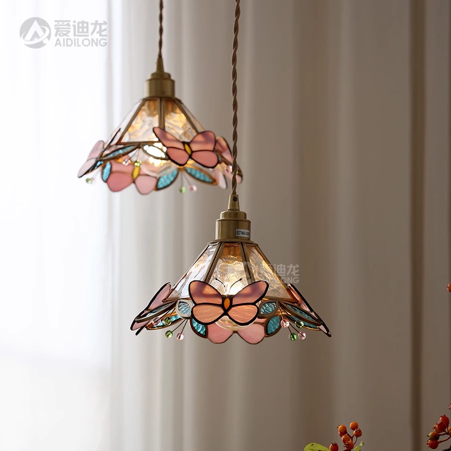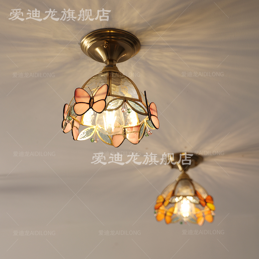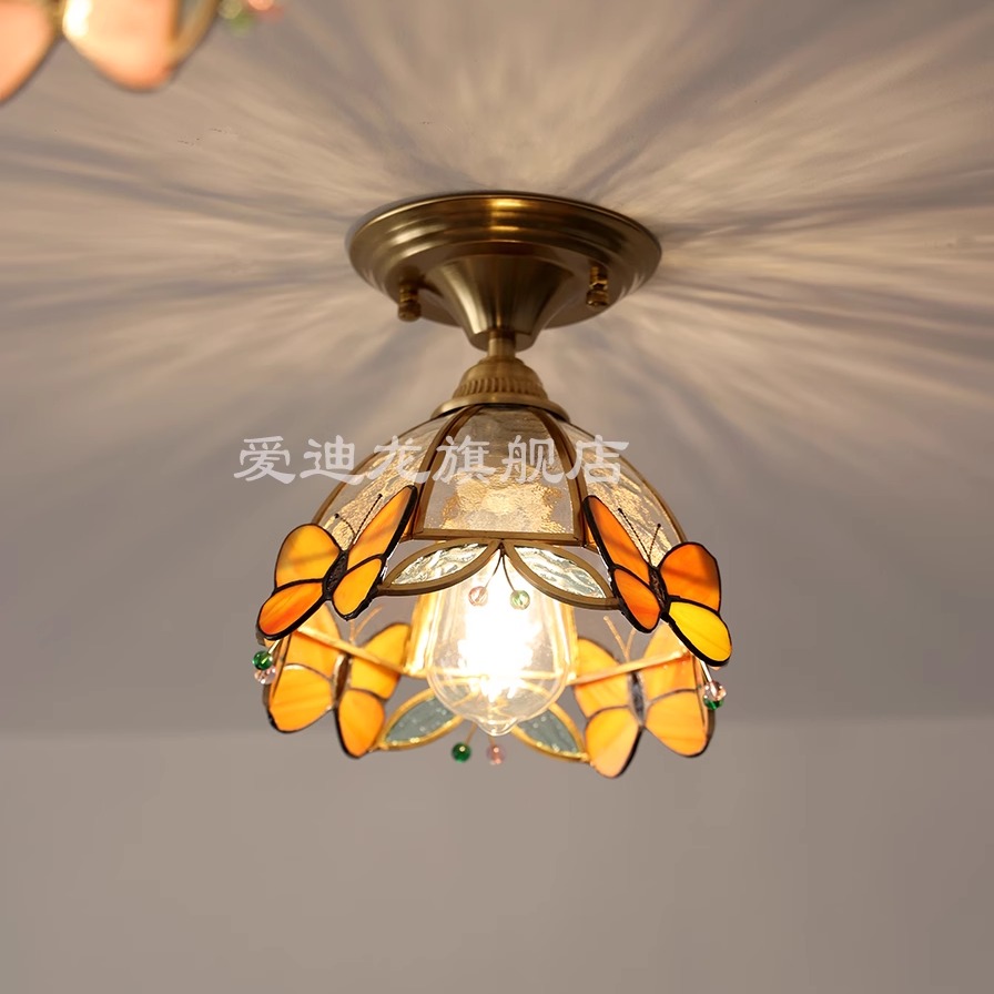法式 走廊过道灯中古风玄关阳台灯卧室衣帽间玻璃彩色蝴蝶吸顶灯