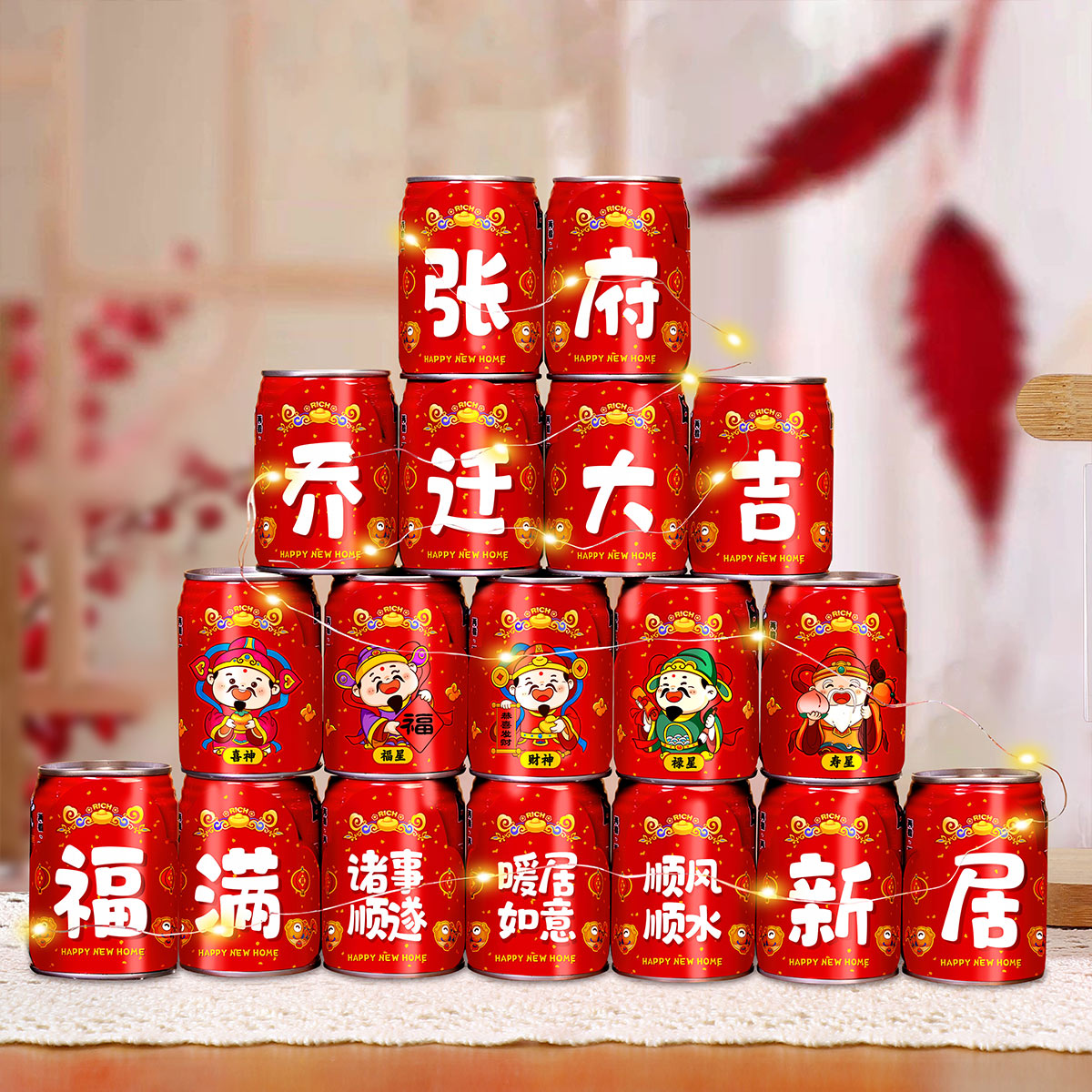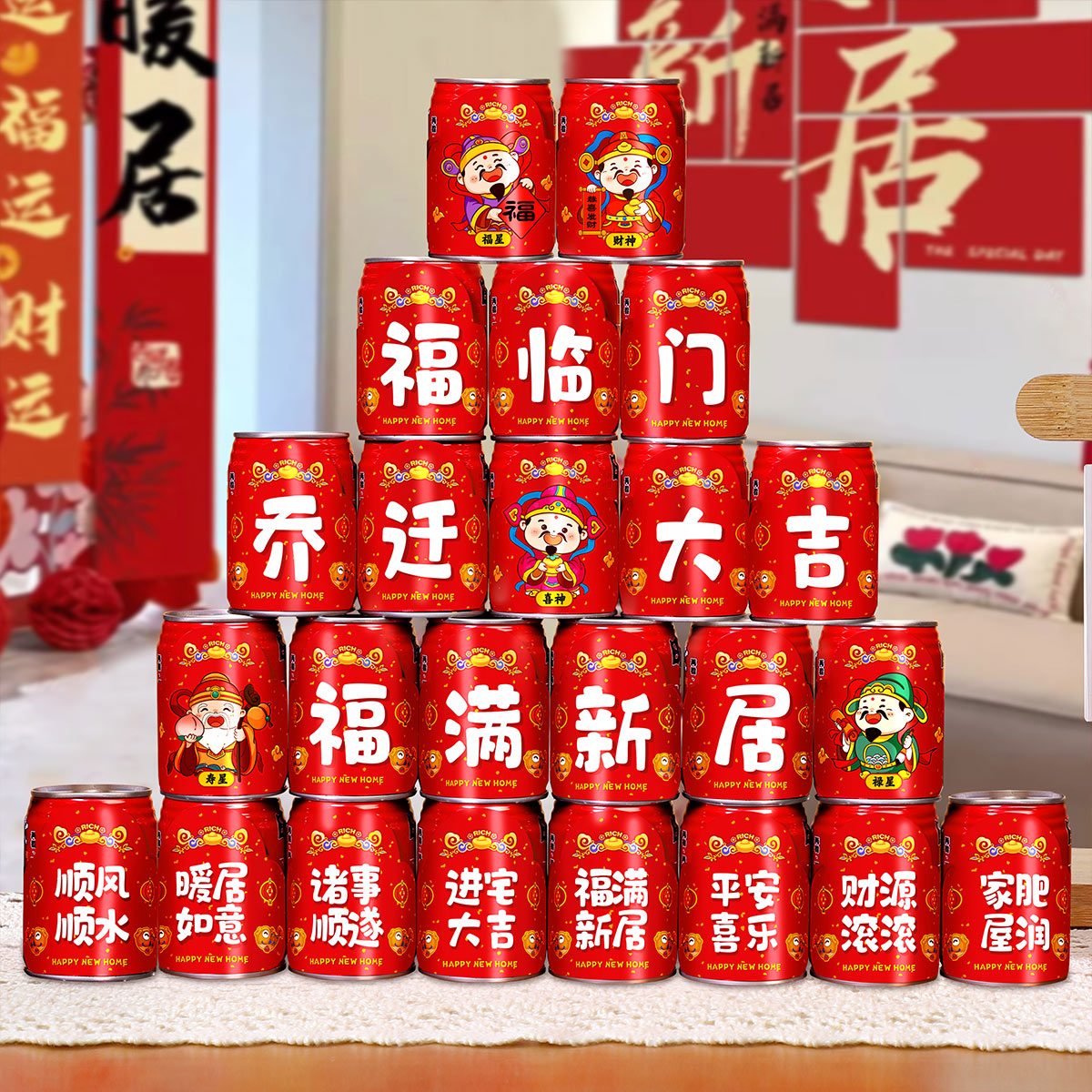 镭射定制旺仔可乐贴纸乔迁之喜新居入宅搬家新家布置装 饰用品大全