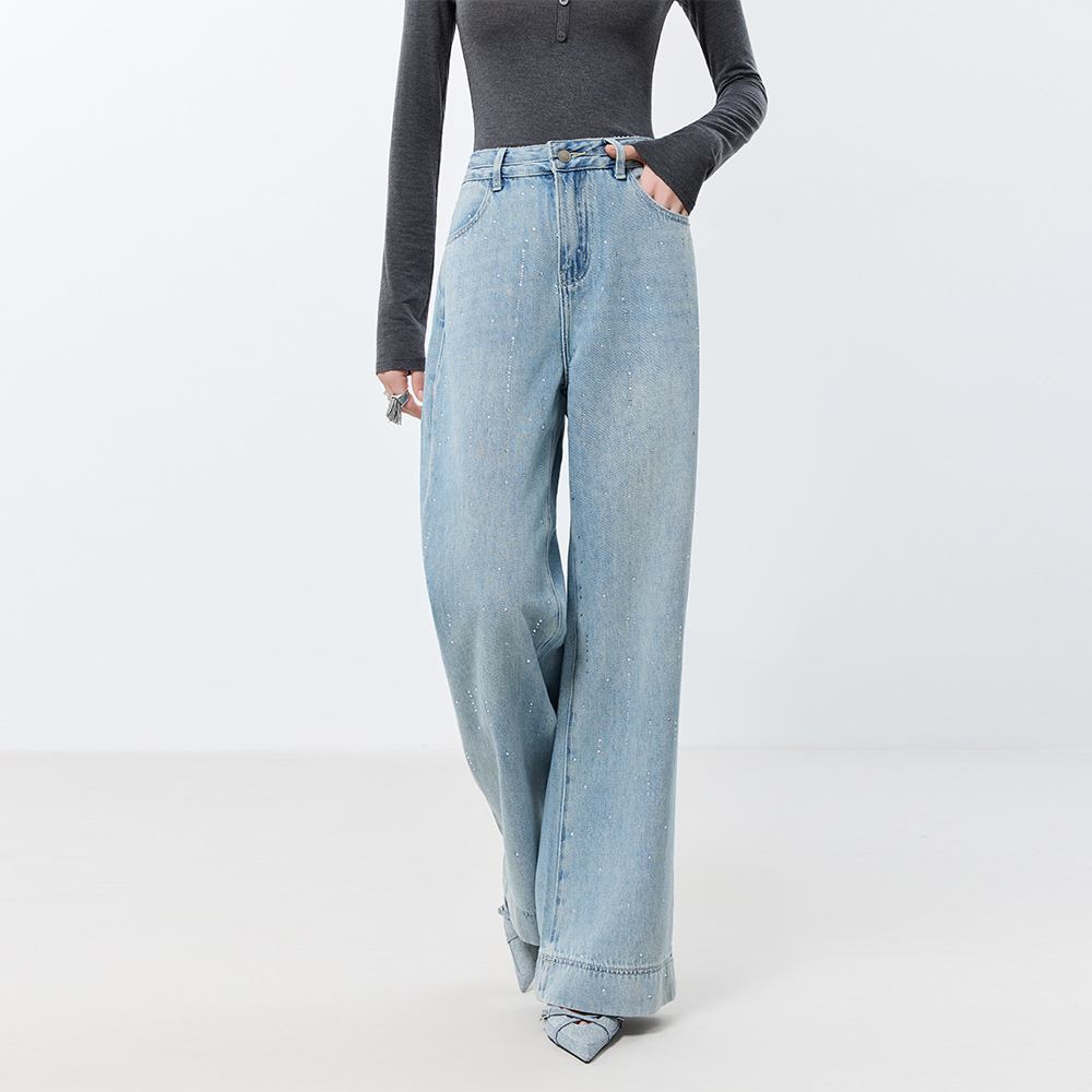 子阔腿牛仔裤 复古直筒女士裤 女 流星泪痕烫钻宽松窄版 至漫ZHIMAN
