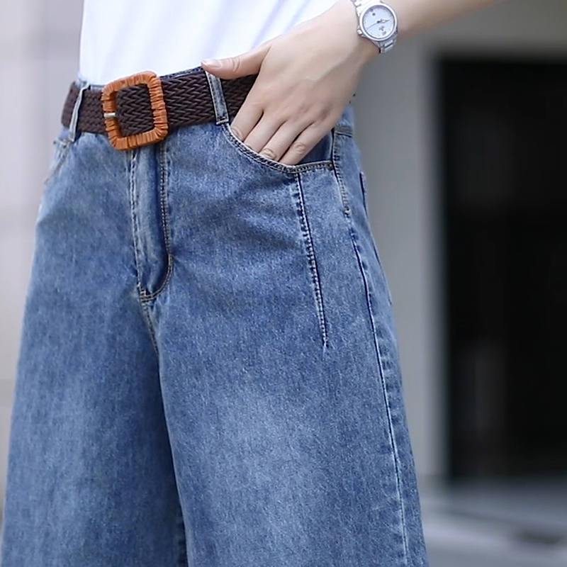 牛仔直筒短裤 百搭阔腿裤 女2025夏季 高腰显瘦复古中裤 薄款 六分窄版